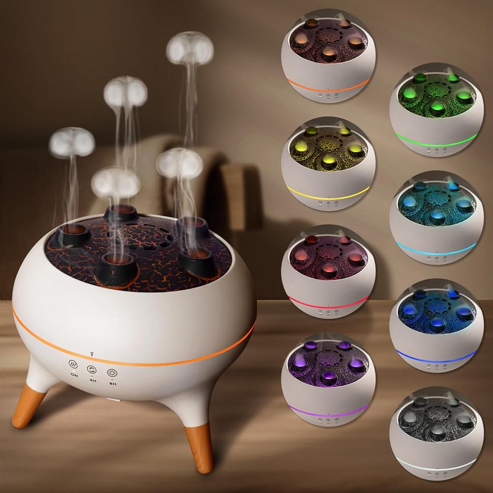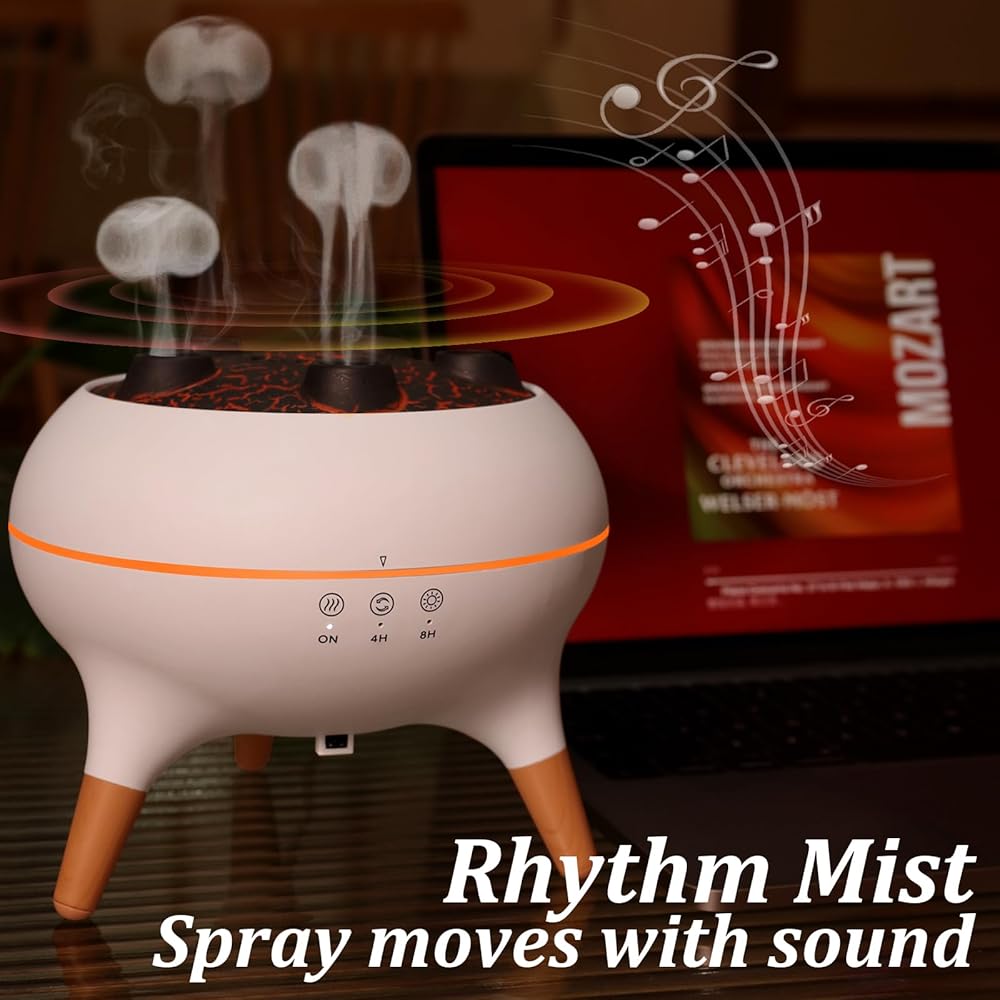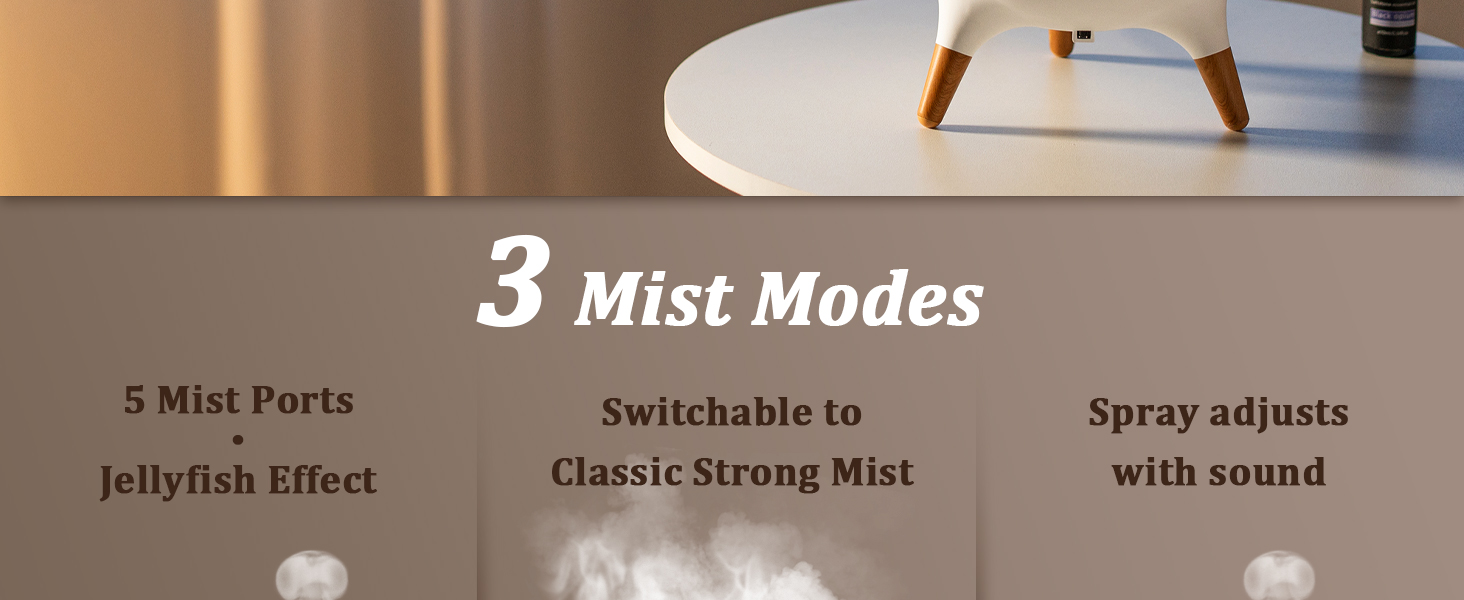 【Jellyfish Rhythm Diffuser】This diffuser creates mesmerizing “jellyfish-shaped” mist patterns that pair beautifully with your favorite essential oils to help relax the mind and body. The direct spray mode produces rich mist without wetting the table, providing excellent humidifying performance. In rhythm mode, the mist pulses in sync with nearby music or sounds—adding a fun, dynamic touch to your aromatherapy experience.