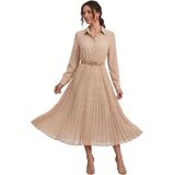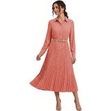 ❤Dressy Design: Formal half open shirt top with flowy pleated bottom skirt give you elegant silhouette, high elastic waist and trendy belt highlights your wavy contour, while collared button down placket and cuffed long sleeves make you look chic and smart
