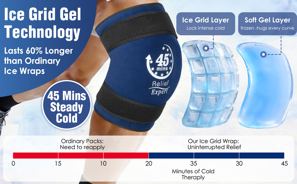 Up to 45 Minutes of Deep, Steady Cold: Our advanced Ice Grid Gel features 20 individual cooling cells that work together to slow down melting and deliver consistent, penetrating cold for a full 45 minutes. This innovative structure ensures even cooling across the entire wrap—no warm spots, no icy patches—so you get steady relief from post-workout soreness or everyday joint discomfort without interruption.
