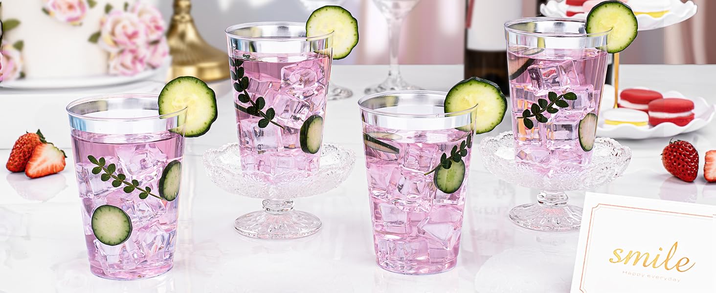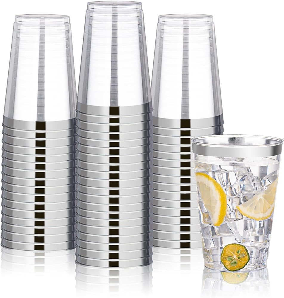 Glamorous Design: These clear cups with silver rim are a real treat! These silver plastic cups add a touch of glamour to any party or family gathering. Perfect for making your drinks look extra special