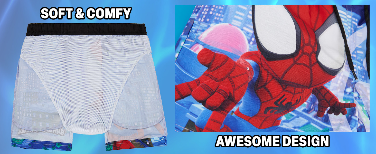 Marvel Spiderman fans can step into summer with confidence wearing these fun and comfortable boardshorts designed for active days. These swimming trunks for boys combine lightweight construction with bold character graphics, making them a dependable choice for beach trips, pool days, and warm weather adventures. Built for comfort and movement, these boys lined swim trunks support everything from swimming to relaxing by the water. The breathable design helps keep kids and toddlers feeling comfortable throughout the day, whether they prefer little boys swim trunks or need sizes suitable for big boys swim trunks. These styles also work well as toddler boy swim trunks, offering flexible wear across different age groups. Lightweight fabric supports easier movement in and out of the water, helping kids stay ready for every splash. Each pair of swim briefs includes an adjustable waistband for a flexible fit and functional pockets for convenience during outdoor activities. The versatile construction makes them a practical option within boys' swimwear collections, while also fitting seamlessly into everyday summer wardrobes. Whether heading to the beach, water park, or vacation destination, these Spiderman swim trunks help deliver comfort, character style, and reliable performance throughout the season.