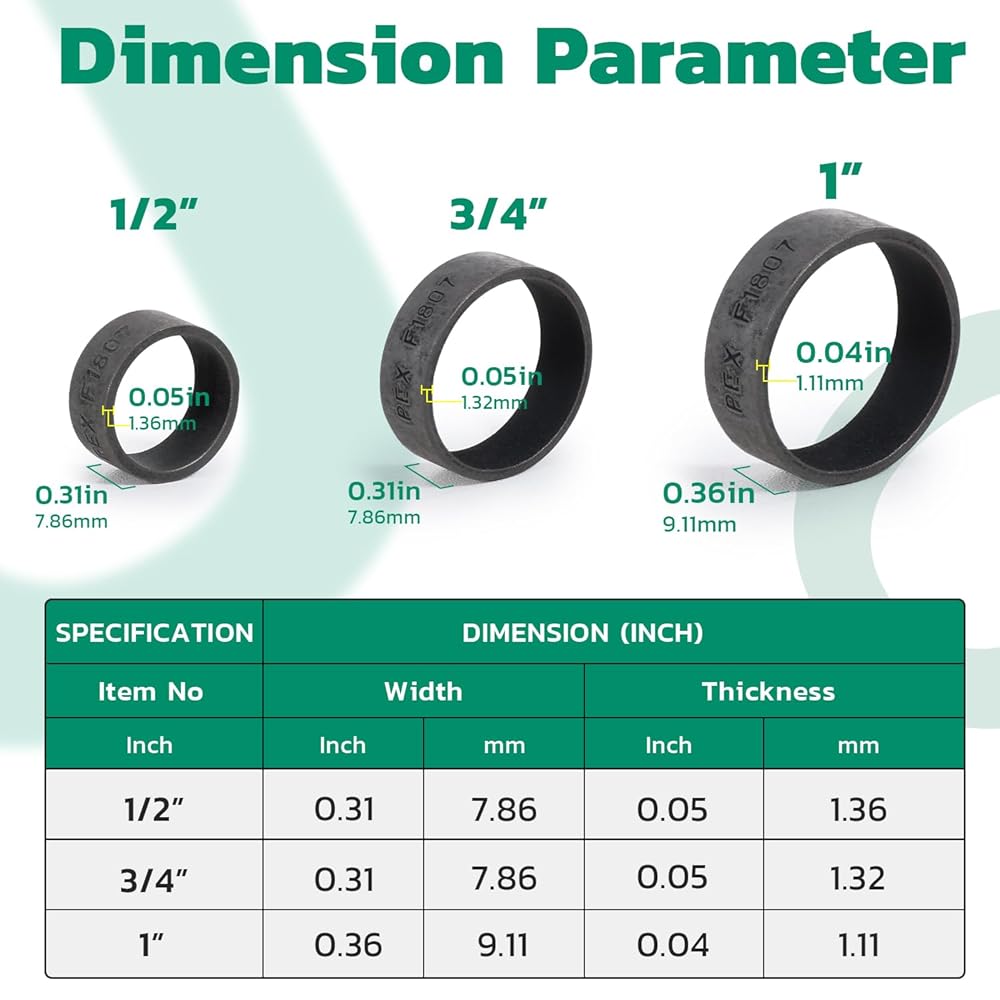 Easy Installation: Works with compatible PEX crimp tools for a simple and efficient installation process. Just place the ring over the tubing, insert the fitting, position the ring, and crimp.