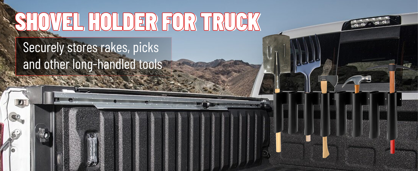 Securely Organize: Truck shovel holder prevents tools from becoming dangerous road hazards. It securely stores rakes, picks, and other long-handled equipment, even at highway speeds.