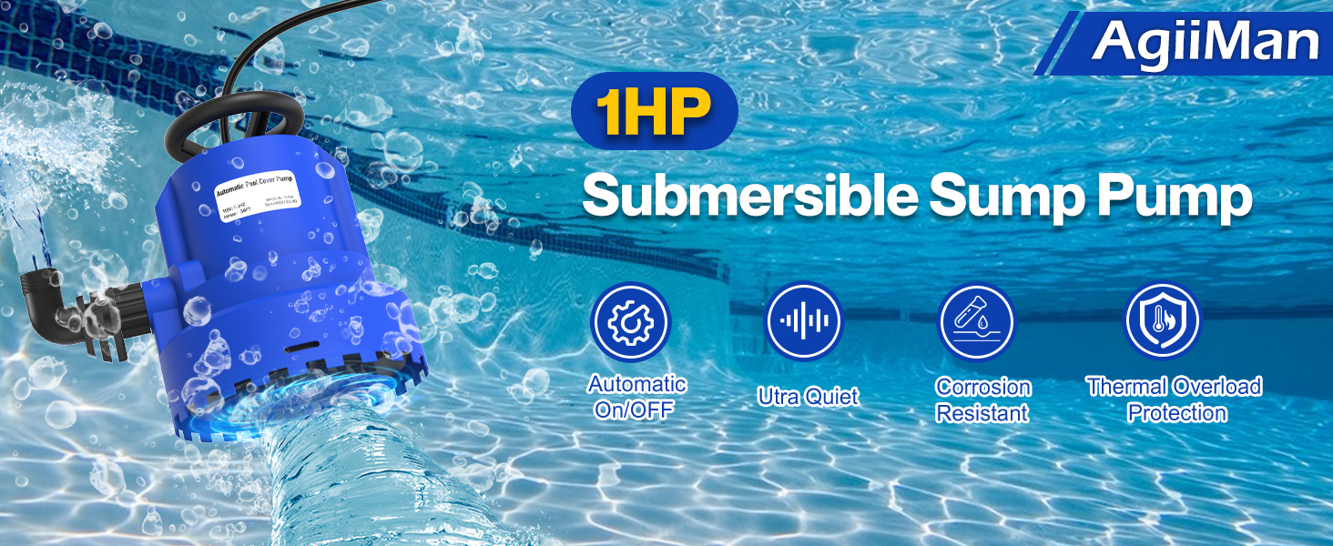 Efficient Water Removal: The AgiiMan 1HP submersible pump displaces up to 5000 GPH of water, which allows you to get the job done in less time. The rugged 300-watt motor ensures smooth water flow and quiet operation with a maximum head of up to 36 feet. Pool cover pumps are ideal for water intake in basements, pools and ponds