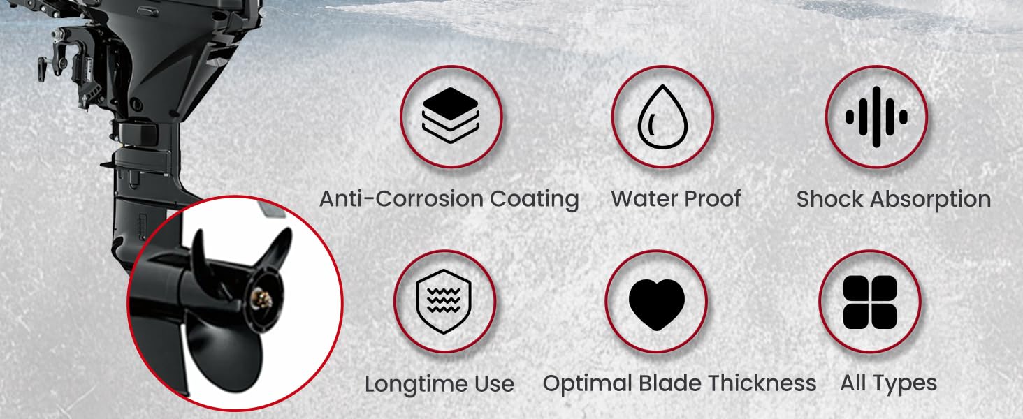 Durability and Performance:25-60HP propeller fit Yamaha.Patent special aluminum alloy satisfying durability and mechanical property is used, which is suitable for leisure boat and work boat, proved by long research and test.