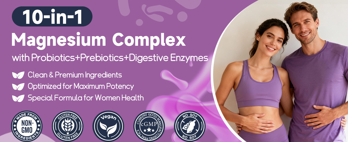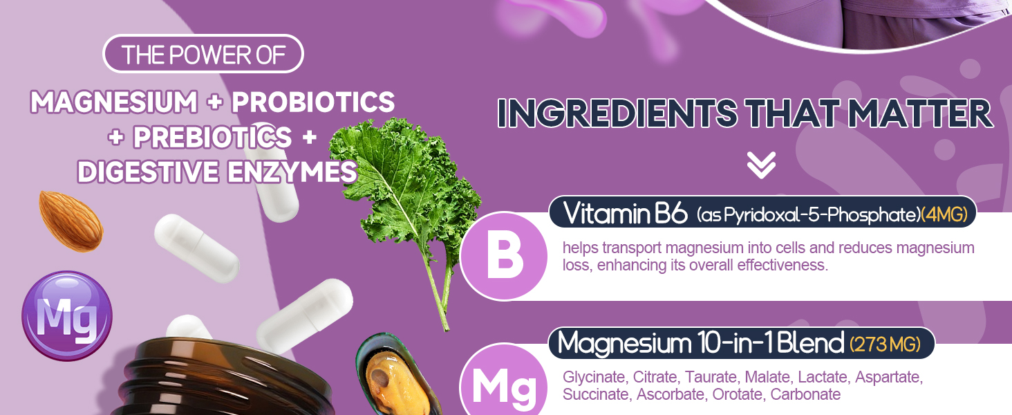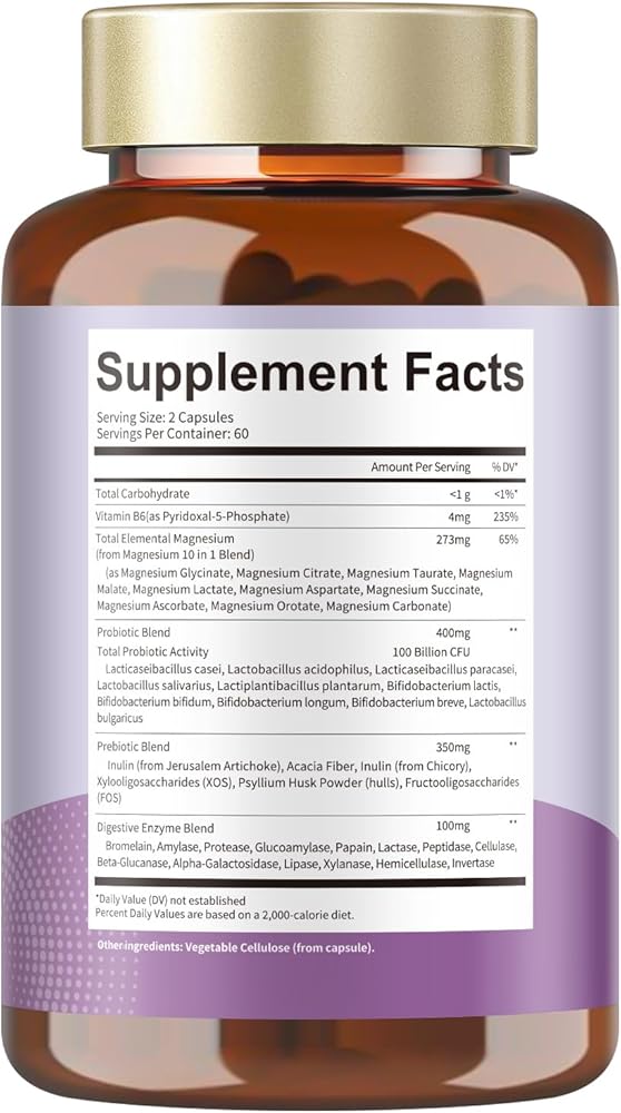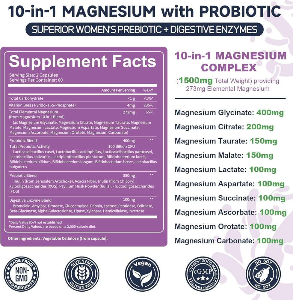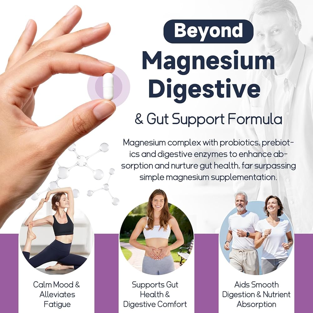 Premium Magnesium with Targeted Digestive Support: Formulated with clean, plant-based ingredients, this magnesium complex for woman is designed to be gentle on the stomach. The combination of probiotics, prebiotics, and digestive enzymes supports long-term gut health while enhancing magnesium utilization—making it ideal for daily use.