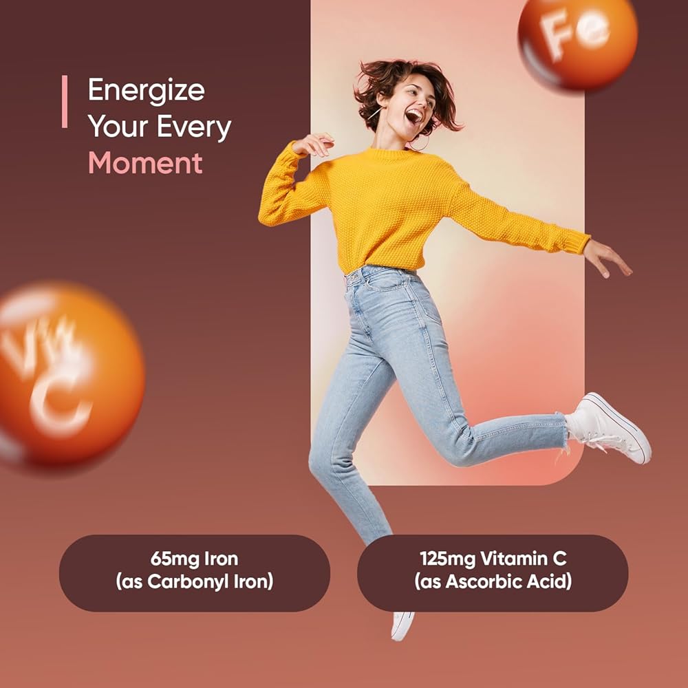 IRON PLUS VITAMIN C FOR BETTER ABSORPTION: Our iron 65mg tablets are combined with vitamin C, creating an effective iron with vitamin C formula that helps improve iron absorption in the body. These iron supplements for men & women are carefully formulated to be gentle on the stomach and easier to absorb compared to many typical only iron tablets. Our iron pills for women and men offers a simple and effective way to help maintain healthy iron levels.