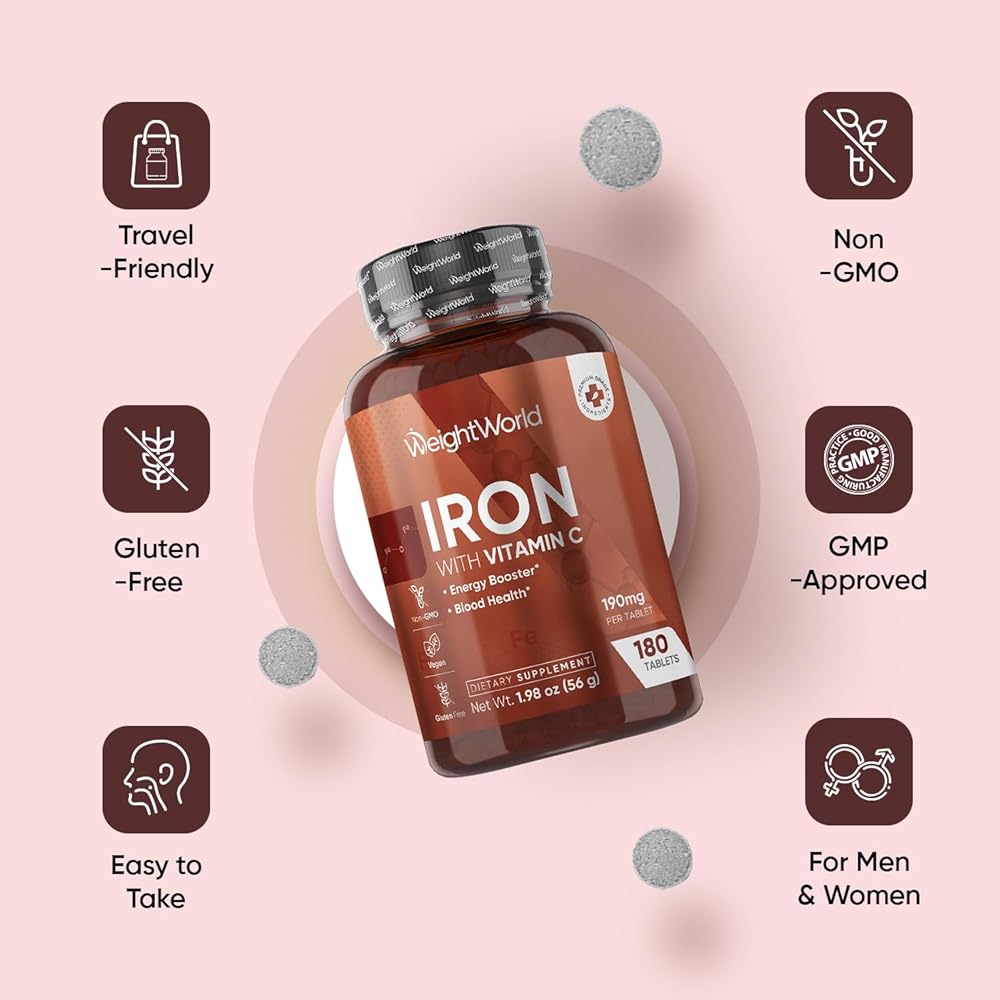 NON-GMO & GLUTEN-FREE: WeightWorld's Iron Supplement with Vitamin C is GMP-approved and is thoughtfully made to suit a wide range of dietary needs. Our iron supplement 65 mg tablets are also non-GMO, gluten-free, easy to swallow, and travel-friendly. Unlike iron gummies for men & women, our vegan iron and vitamin C formula contains no added sugar. These iron vitamin C tablets are carefully formulated for your consistent iron intake.
