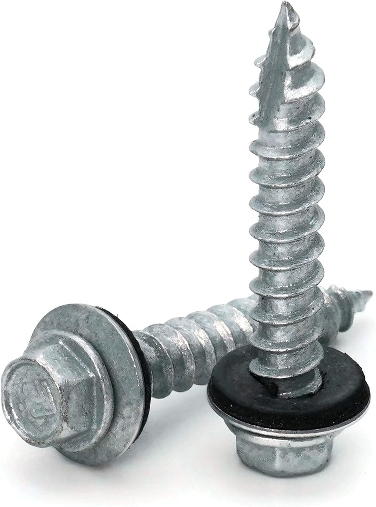 Roofing screws in this selection feature a notched type 17 drill point ideal for attaching thin metals to wood with ease. They are made of 1022 carbon steel for superior performance and feature a mechanical galvanized zinc plating for durability and corrosion resistance. Fastgrip hex washer head roofing screws have a strong "V-Neck" head to completely cover the inner diameter of the EPDM bonded washer for a high installation strength and a better seal. Like all painted head roofing screws from Albany County Fasteners, Fastgrip type 17 point metal to wood roofing screws are wet painted. This process creates a long-lasting paint application that stays on and keeps its color. Painted roofing screws are available in 13 different color varieties (including unpainted).