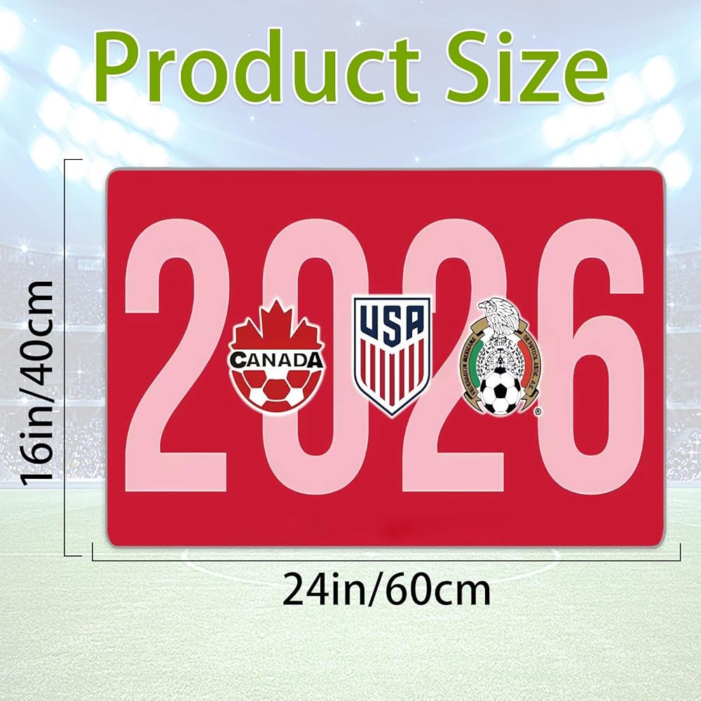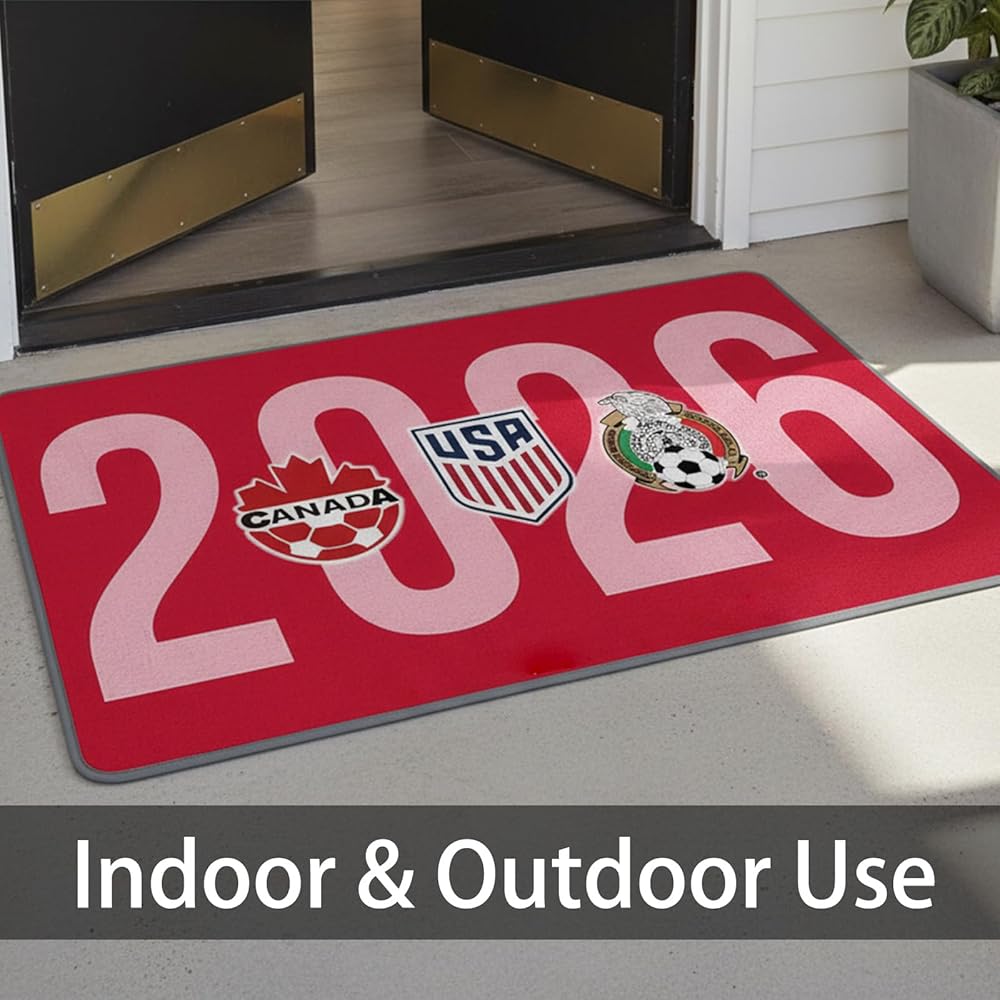 Celebrate the spirit of the global game with this vibrant 16"x24" door mat, designed for the world cup merchandise 2026. Featuring bold colors and motifs inspired by the host nations-USA, Mexico, and Canada-this mat is the piece of home decor for any soccer fan. Its versatile size and durable construction make it ideal for multiple uses, function as a dependable front door mat outside your entrance, a stylish entryway rug, or a practical kitchen mat for the floor. It also serves as a great runner rug, a decorative area rug, or the ultimate man cave rug and soccer bedroom decor, instantly upgrading any rug for boys room or soccer bedroom with sporty flair. Crafted from high-quality, easy-clean materials with a reliable non-slip backing, it stays securely in place on various flooring, offering both safety and everyday functionality as rugs for entryway. More than just a doormat, it's a ready-to-gift essential for any occasion, allowing fans to showcase their passion through durable and vibrant house decor.
