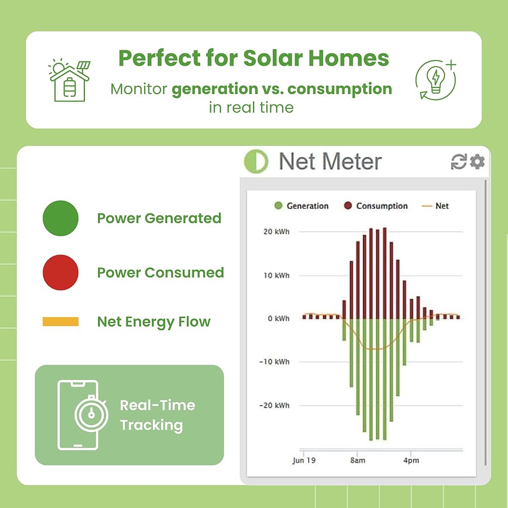 Take Control of Your Power Use in Real Time: The Eyedro Home power meter gives you instant insight into how much electricity your home consumes and produces — empowering you to save money and optimize energy efficiency. Works as a whole home energy monitor or solar meter, giving clear, accurate data on your power usage 24/7.