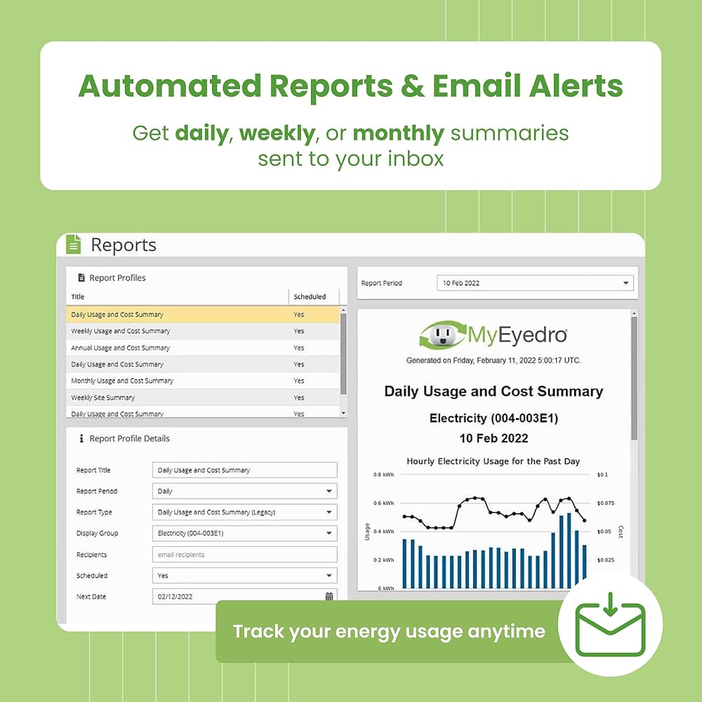 Track, React, Save – Identify energy waste, lower utility bills, and make smarter choices with real-time tracking through the MyEyedro cloud. Whether you're living off-grid, managing a smart home, or just want to monitor costs, this smart energy monitoring system helps you visualize your consumption in dollars, watts, amps, and volts.