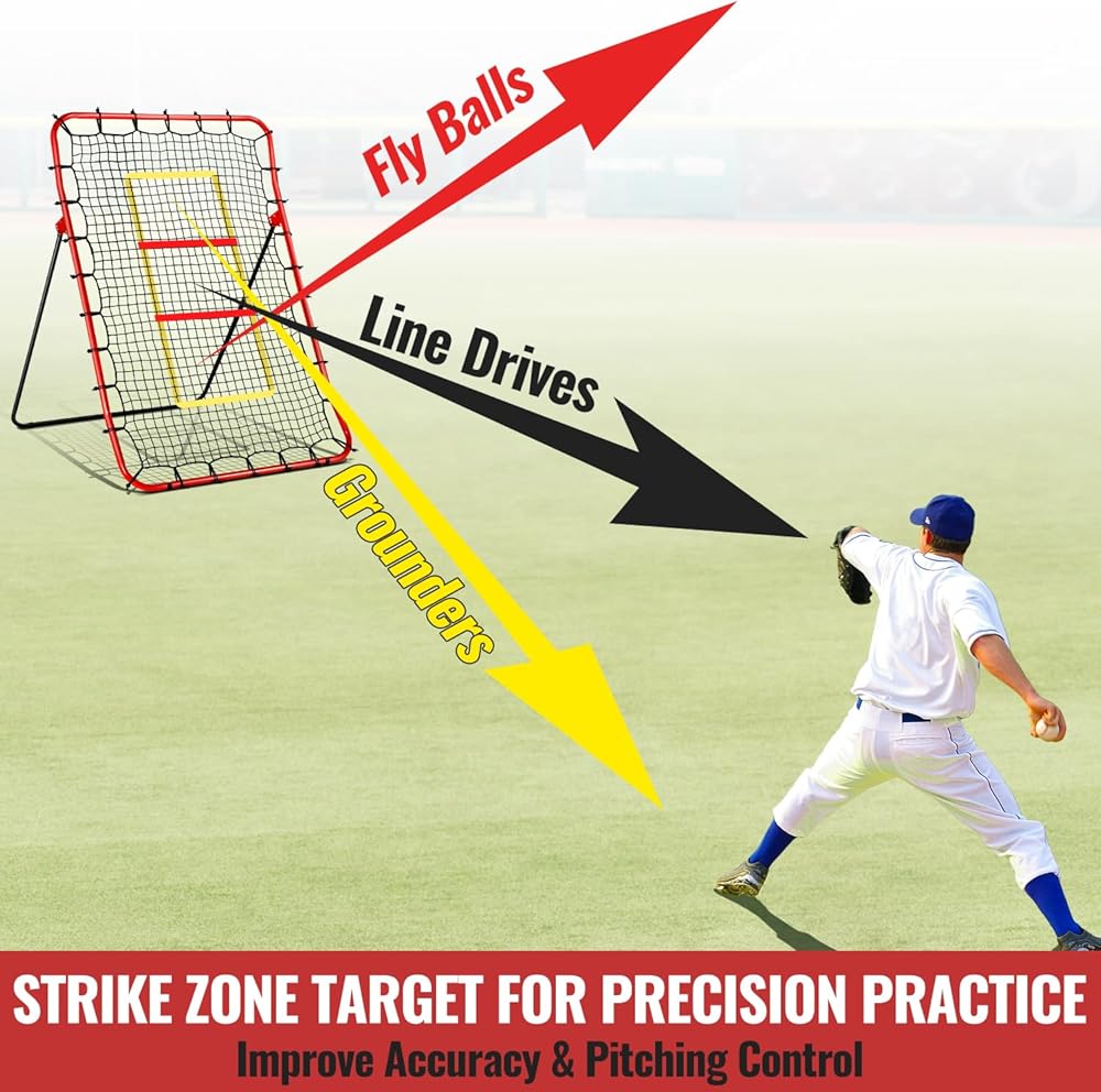 Baseball Rebounders + Pitchback Net,Adjustable 5 Angle Pitch Return Trainer for Fielding,Pitching & Catch Practice,Rebound Net with 3 Targets Simulate Grounders, Line Drives,Fly Balls for All Players