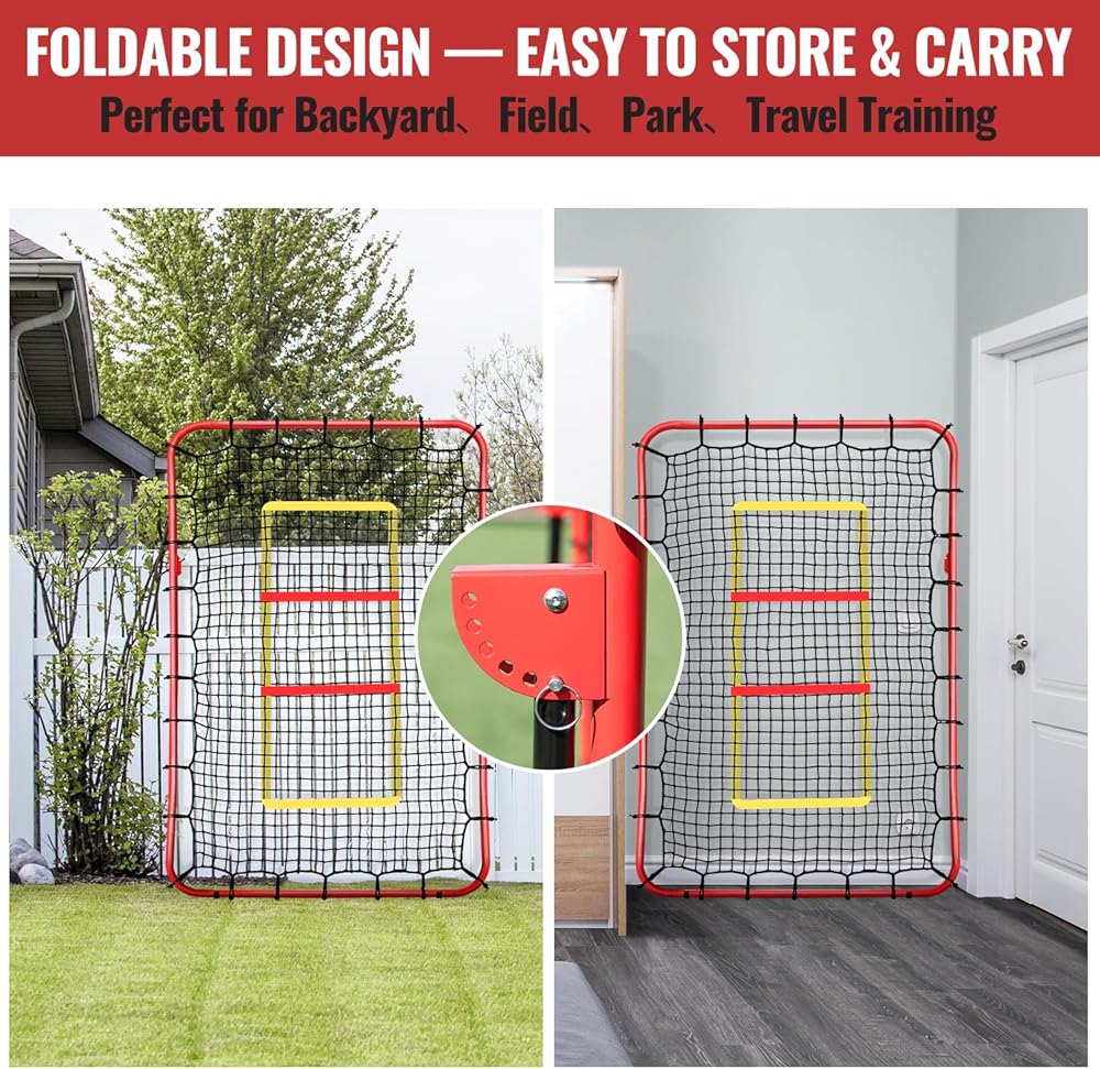 ⚾【FOLDABLE DESIGN — EASY TO STORE & CARRY】Quickly assemble and fold for compact storage and portability. Take your baseball rebounder net to the backyard, park, or field. Ideal for baseball and softball players, including pitchers, catchers, and fielders.