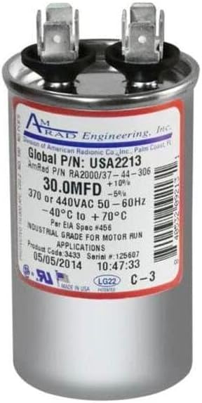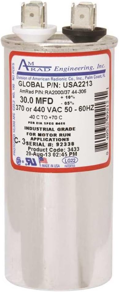 AMRAD ENGINEERING USA2213 Round Motor Run Capacitor, 30 MFD, 370/440 Vac