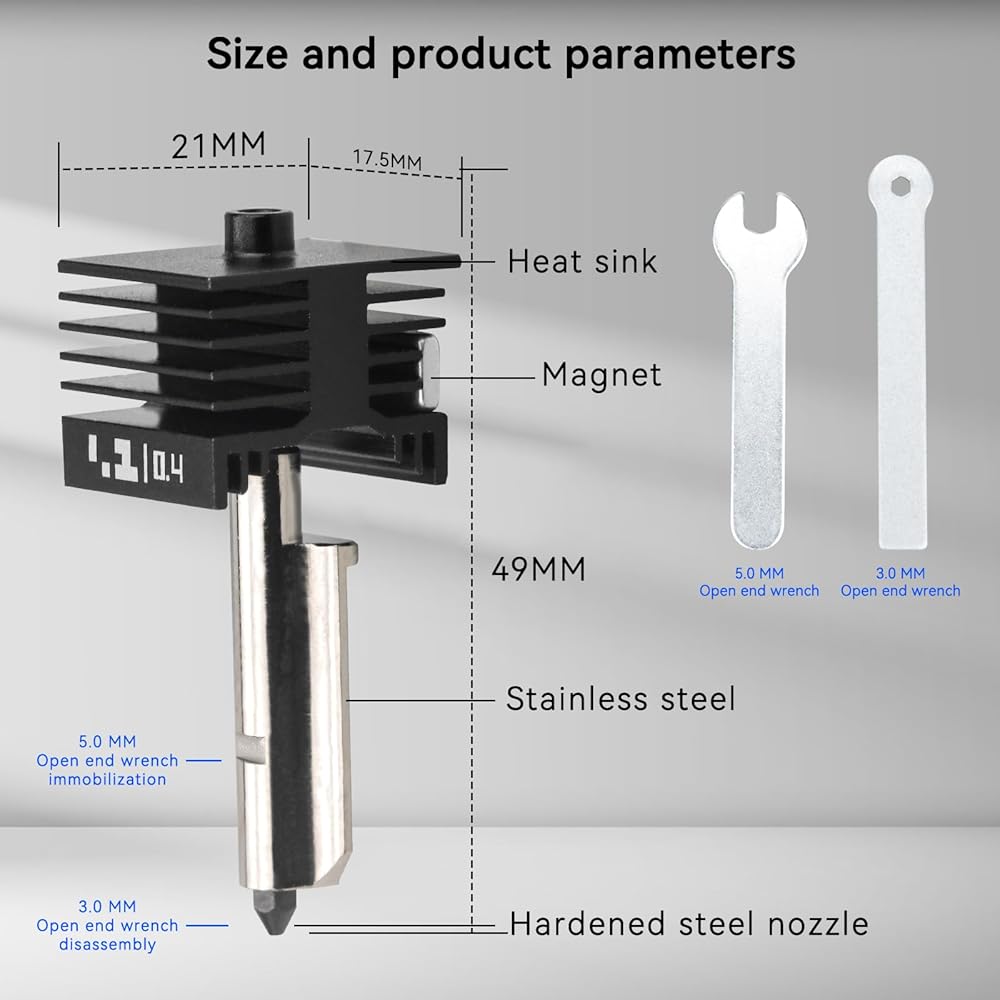 Compatible: This hotend kit is compatible with H2D, A1 and A1 Mini 3D printers. Note, it is recommended to heat and tighten the nozzle to prevent leakage.