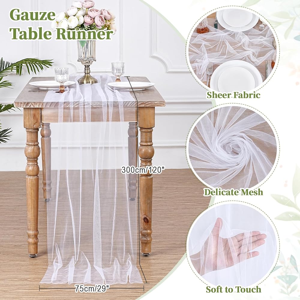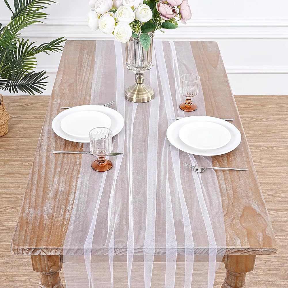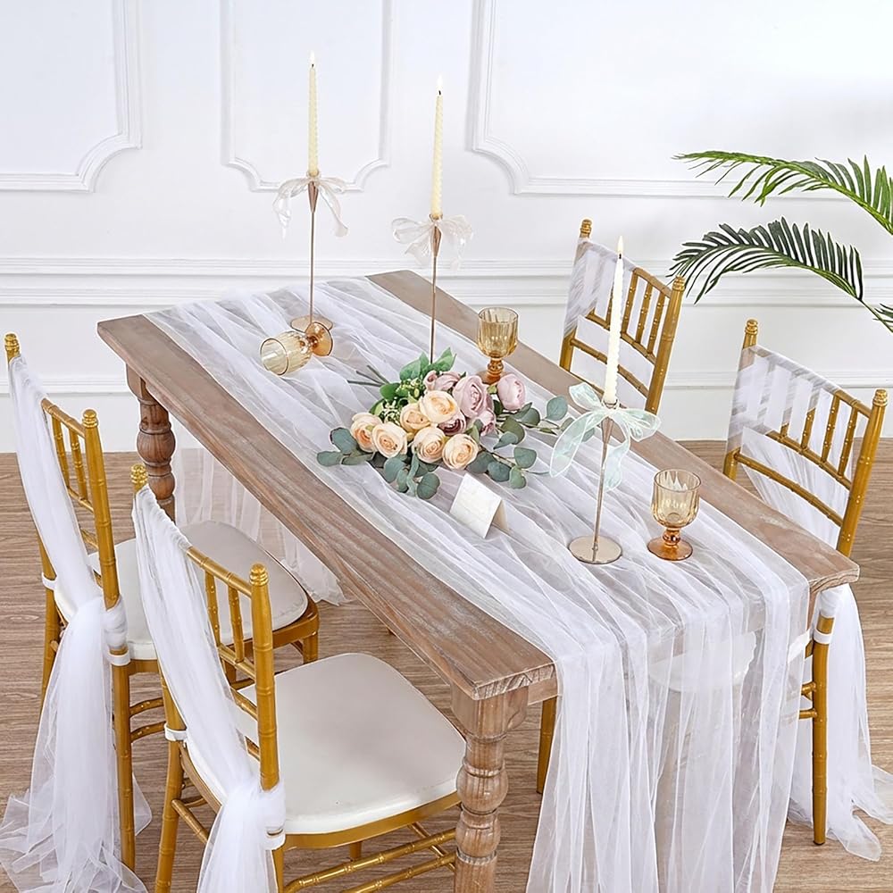 Gauze Tulle are the epitome of elegance and sophistication, and our Sheer Tulle Table Runner brings that classic charm to practically any occasion. Whether you're celebrating an engagement with family and friends, throwing a sophisticated dinner party, or designing your dream wedding, this unique piece can be used in many creative ways.