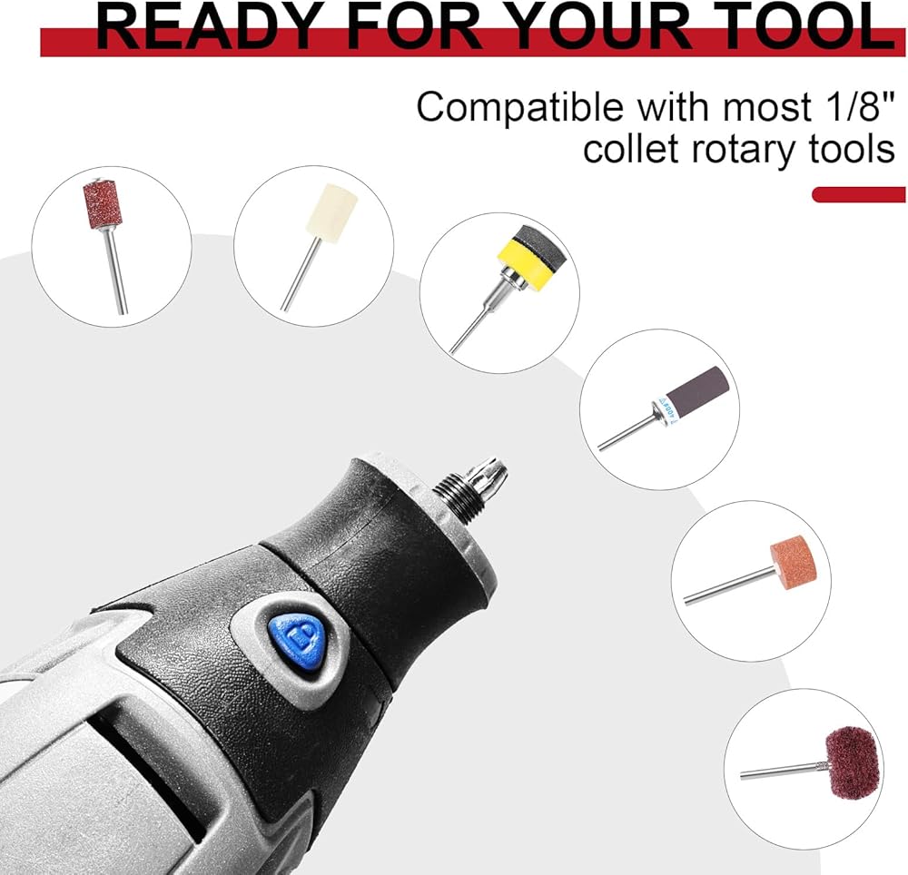 Universal Compatibility: Equipped with standard 1/8" (3.2mm) mandrels, these accessories are fully compatible with Dremel and other major brands like Wen, Tacklife, and Ryobi. The precision-engineered shanks ensure a secure fit and smooth operation even at high speeds.
