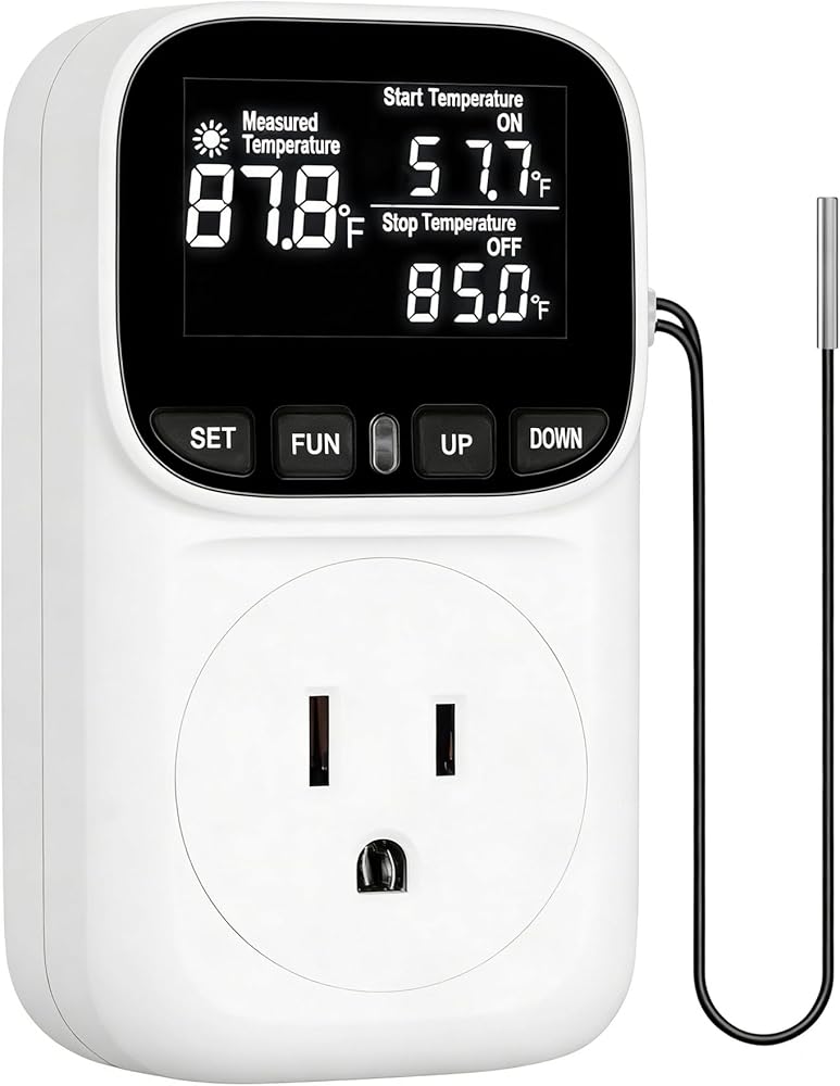 1.Powerful Performance and Overload Protection: The greenhouse heater with thermostat is equipped with a high-quality relay with pure copper coil. It supports a high-power output of 15A and can withstand a maximum of 1800W heating equipment. Even in extreme conditions such as severe cold, it can ensure the stable operation of the high-power heater. The built-in intelligent overload protection system can effectively cut off dangerous current and provide comprehensive safety protection for connected equipment