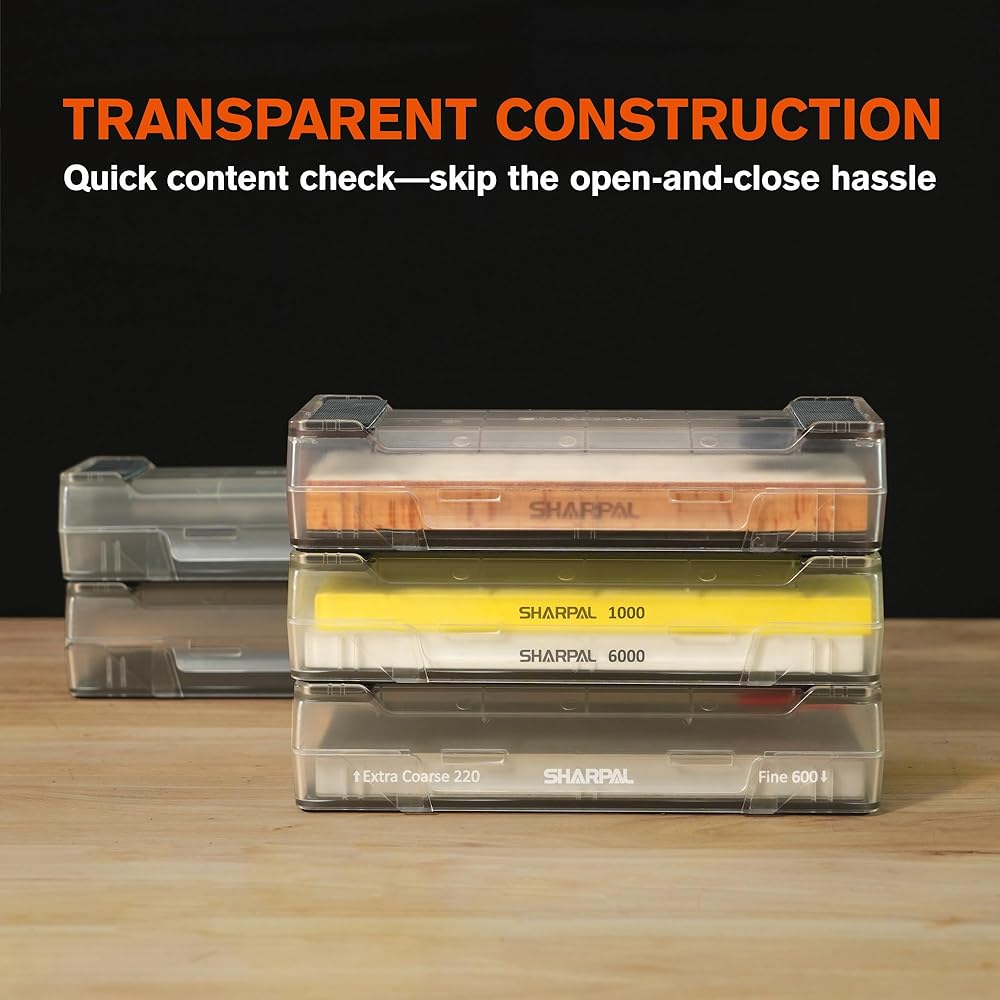 𝟐-𝐏𝐢𝐞𝐜𝐞 𝐒𝐞𝐭: Includes two identical storage boxes, each designed to accommodate whetstones, diamond sharpening stones, oil stones, and leather strops up to 7.95" x 2.95" x 1.1", as well as SHARPAL models 168H, 169H, 162N, 204N, and 140H.