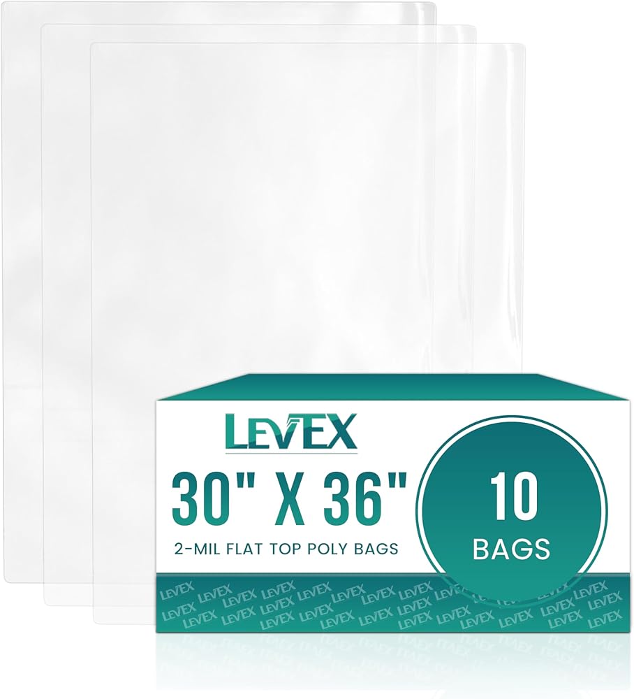 Levex - 30" x 36" (10 Count) Open End Flat Top - 2-Mil Heavy Duty Clear Poly Bags for Packaging, Shipping, Storage & Food (Bags Do Not Have a Seal or Prints)