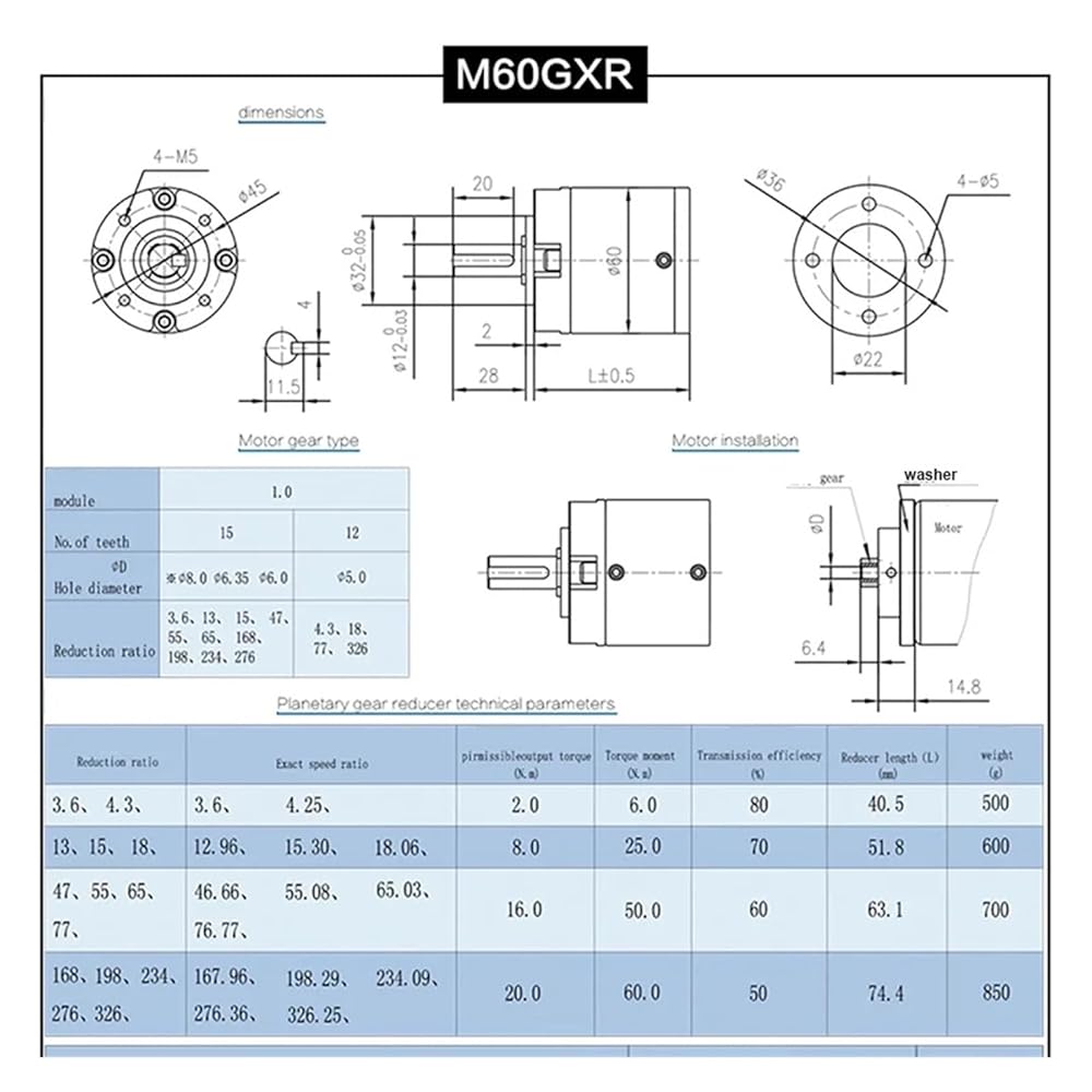 - 52/56/60MM planetary gear reducer can be equipped with brushless DC motor stepper motor high torque low noise long service life