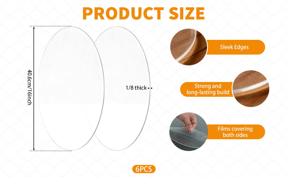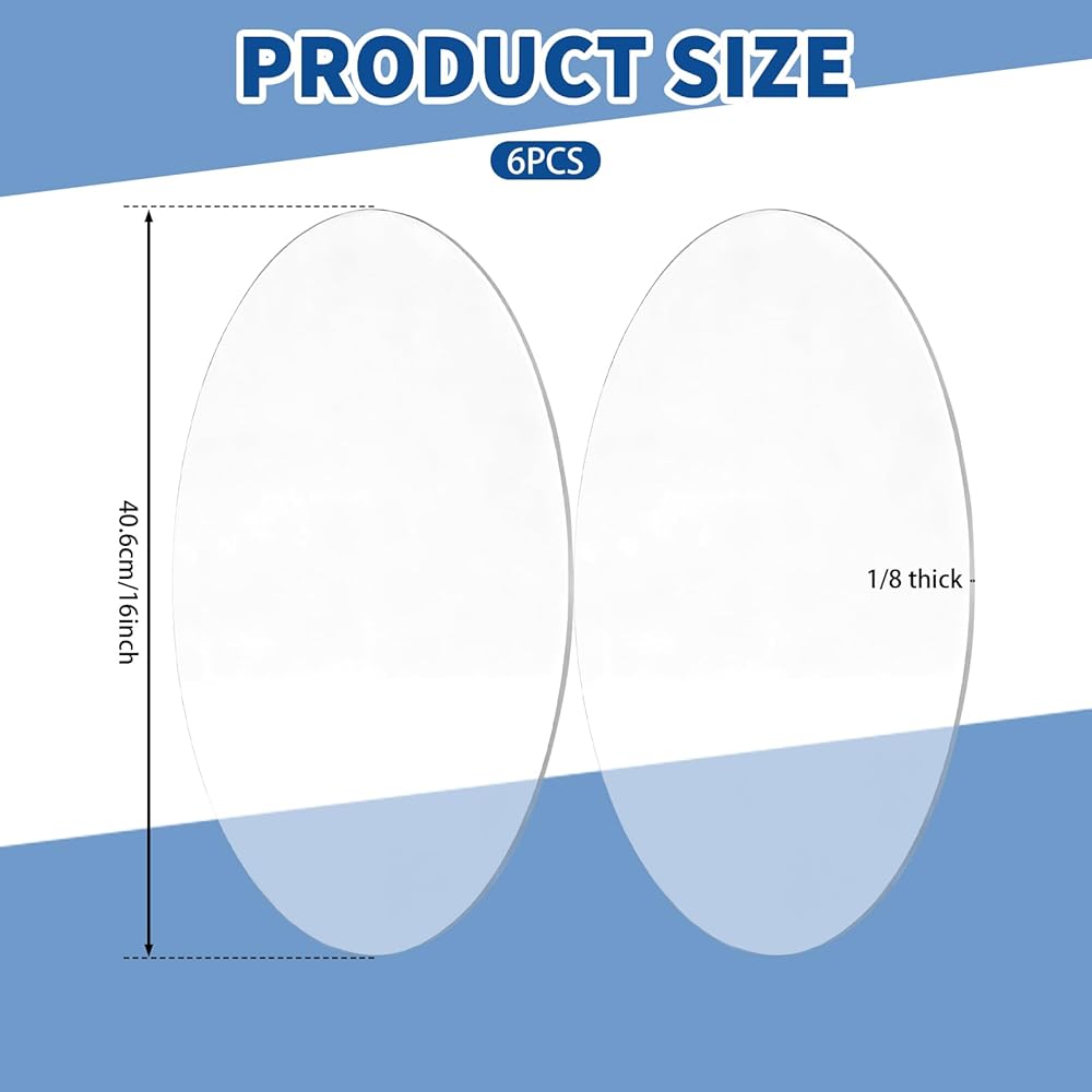 Practical Size: this package contains 6 pieces of 1/8" clear round acrylic sheet, each with a 16 inch diameter, showcasing a practical design with solid form, making each round acrylic sheet ideal for multiple project needs in daily use