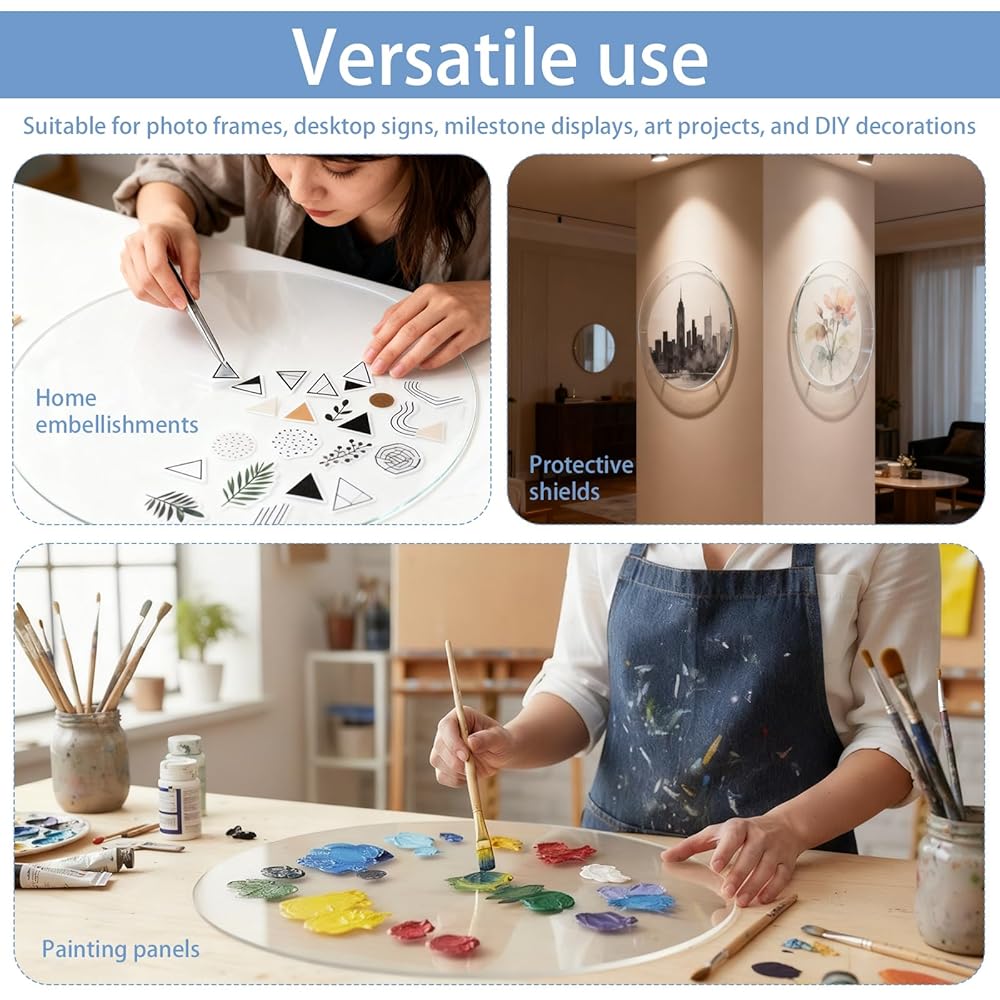 Refined Material: crafted from clear acrylic, each round acrylic sheet demonstrates clarity and performance stability with weather resistance, making this round acrylic sheet suitable for hobbyists and various work environments