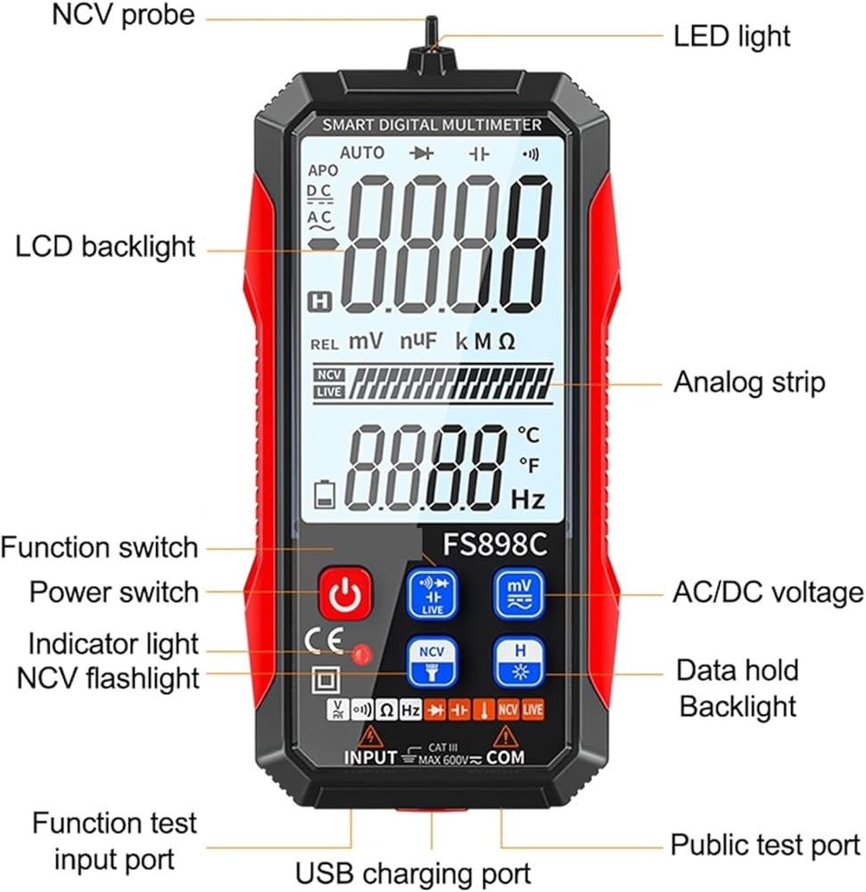 Current Signal Generator Multimeter LED NCV Direct Current AC Voltage Resistance Diode Capacitance Continuity Frequency Temperature