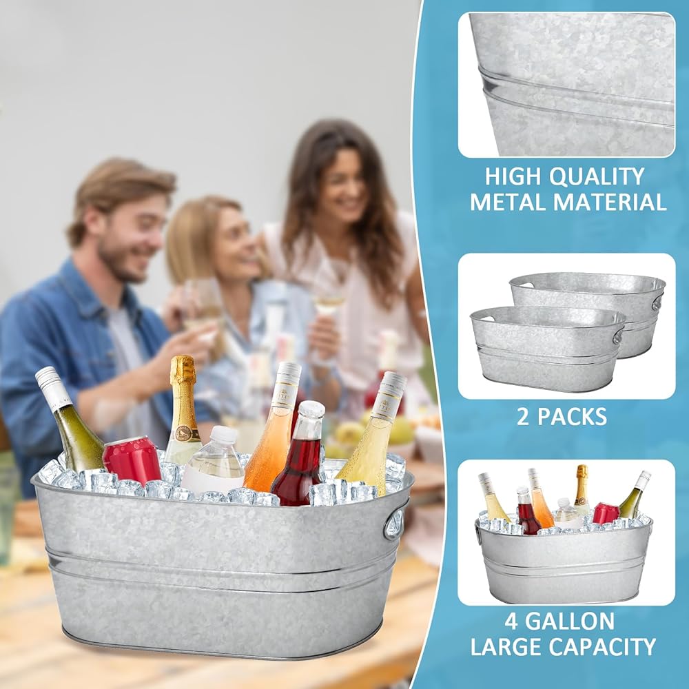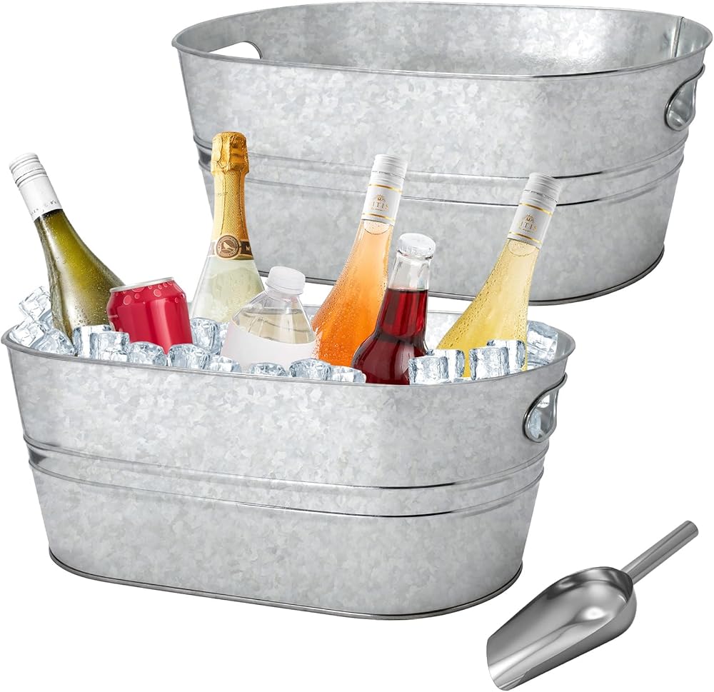Sufficient quantity: you will receive 2 metal beverage buckets, galvanized metal suitable for vintage-styled kitchen or modern farmhouse decoration. The abundant quantity can easily meet your party use and replacement, and you can also share it with your family and friends