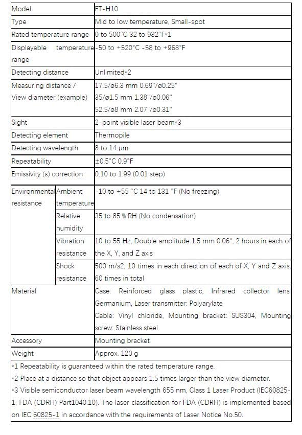 Material: Case: Reinforced glass plastic, Infrared collector lens: Germanium, Laser transmitter: Polyarylate Cable: Vinyl chloride, Mounting bracket: SUS304, Mounting screw: Stainless steel
