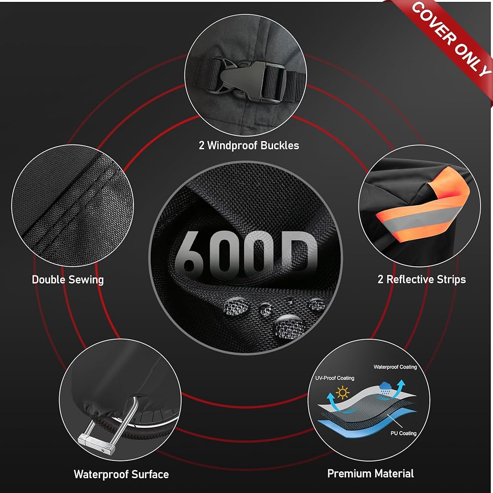 |Universal Fit & Easy Handling| - Designed for adult tricycles, 3-wheel bicycles, and electric trikes. Built for convenience, it can be effortlessly put on or removed, folds into a compact size for storage in your yard or garage, and features quick-drying fabric for hassle-free cleaning.