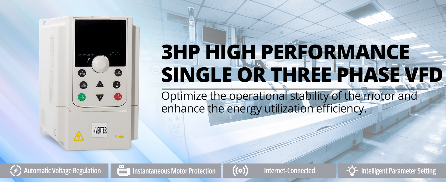 [Wide Applicability]:The variable Frequency Drive Control Inverter is specially designed for various three-phase motor speed control scenarios and is widely used in CNC machines, pumps, fans, compressors, conveyor belts, mixers, and other equipment. Caution: This model does not support external braking resistors; if the motor load is heavy, it is recommended to choose a model with a higher power.