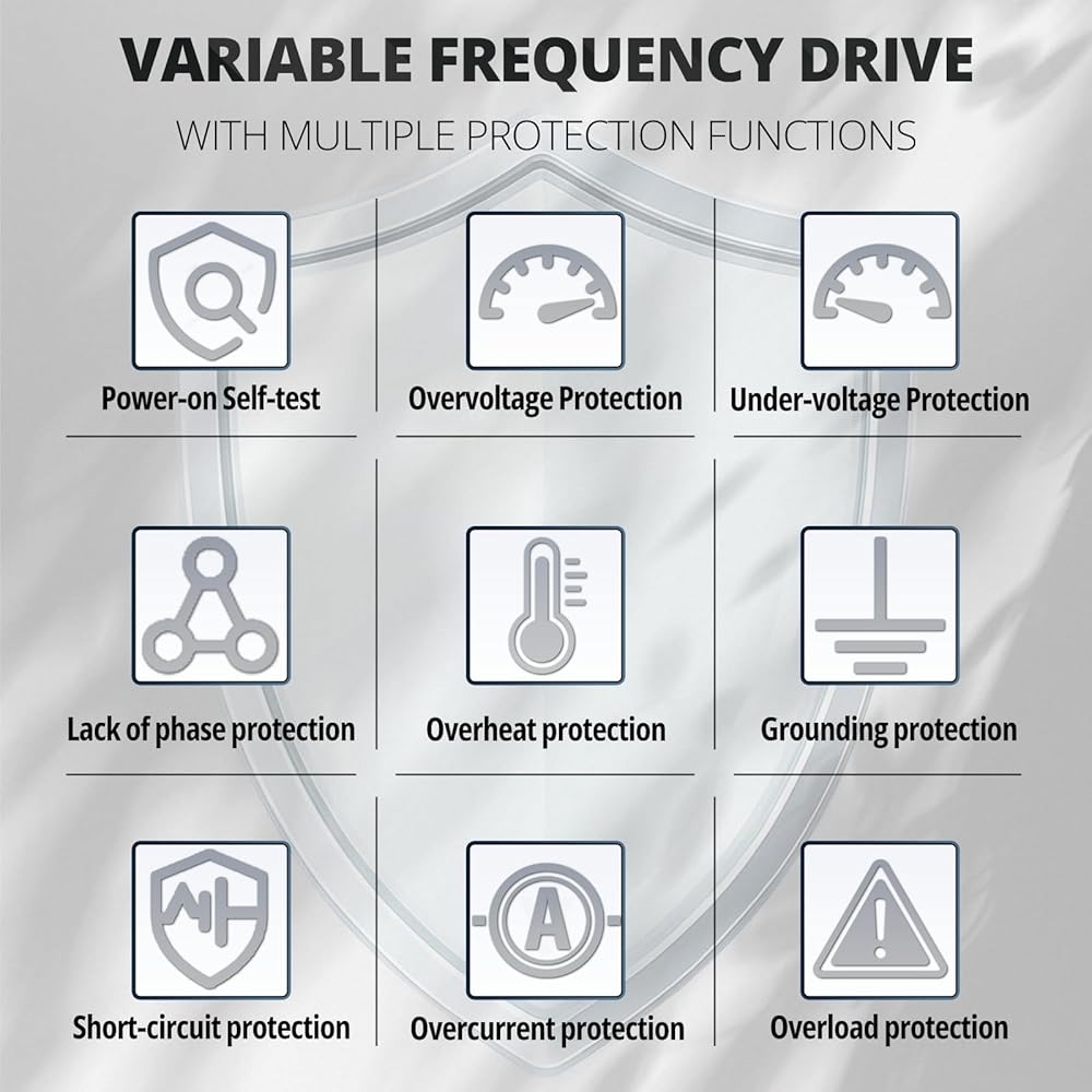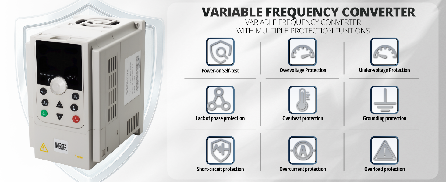 [Durable and Reliable]:The vfd variable frequency drive uses high-quality copper coils and a triple-proof paint circuit board (resistant to moisture, dust and corrosion), ensuring that the internal components can operate stably in harsh environments.