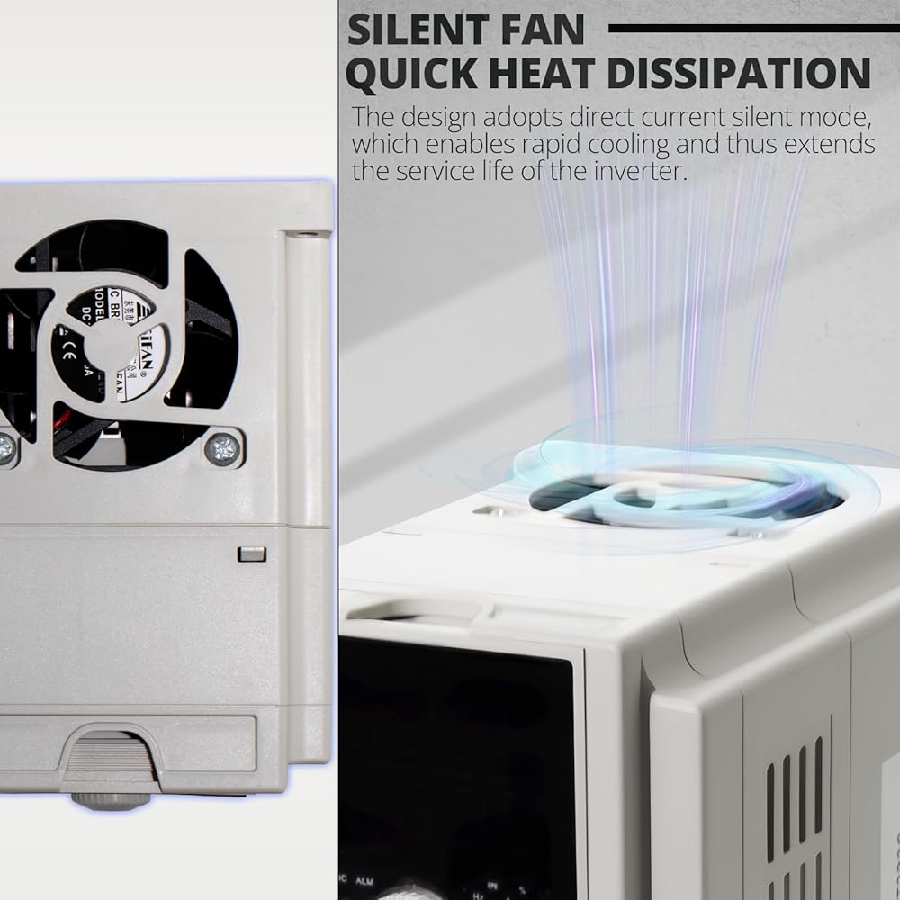 [Efficient Heat Dissipation]:The vfd inverter adopts an innovative multi-grid and multi-hole three-dimensional heat dissipation structure, combined with high-efficiency silent fans, to form an efficient ventilation channel. Even when operating under full load for a long time, it can quickly dissipate heat, effectively extending the service life and reducing the failure rate.