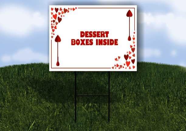 Dessert Boxes Inside Red Frame With Hearts Up Arrows A-Frame Single Sided 23x23 in. sign in Kuwait