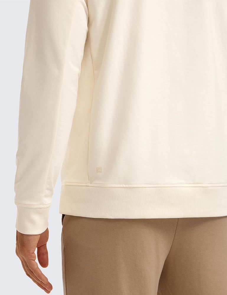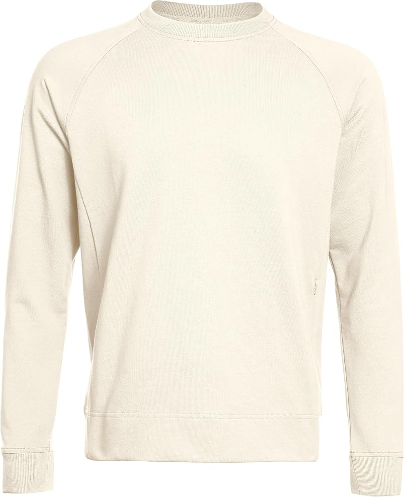 The cotton fabric is soft, breathable, stretchy and slightly thick. Crew neck with underarm gusset and zipper pocket shapes a stylish and sporty look. This cotton-blend sweatshirt is ideal for work, school, commuting or daily wearing.