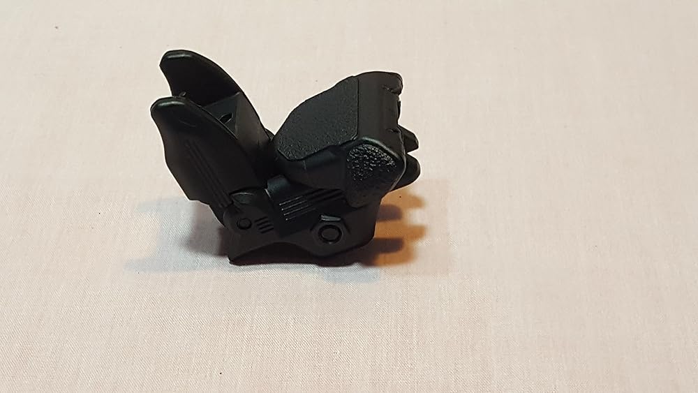 Front flip-up/push-down iron sight - Polymer, Black|Same level plane - Secure Fit - Holds Zero well|Windage & Elevation adjustment, Dual aiming apature on rear sight.Sniper Tactical Smart Polymer Front Flip Up Iron Sight, Black MFLFS03