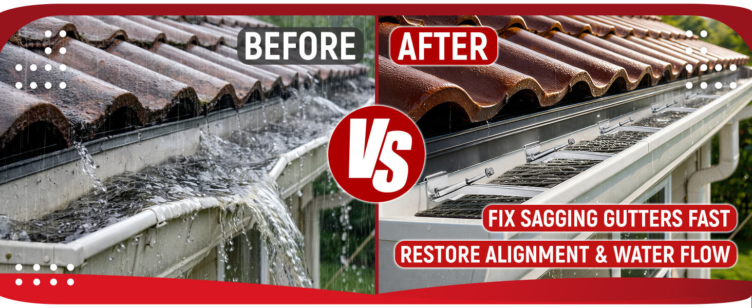 Help Support Sagging Gutters: Help support gutter alignment and water flow; strong gutter hangers reinforce weak sections and help stabilize rain gutter systems that start pulling away from the fascia