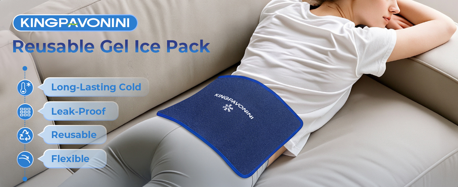 [50-Min Longer Cold for Fast Relief] KingPavonini large ice pack with solid gel + liquid ice grid locks in cold up to 50 mins—50% longer than traditional gel packs; delivers continuous cold to target areas, ideal for post-surgery recovery, sports injuries, and daily relief from pain, swelling, and inflammation