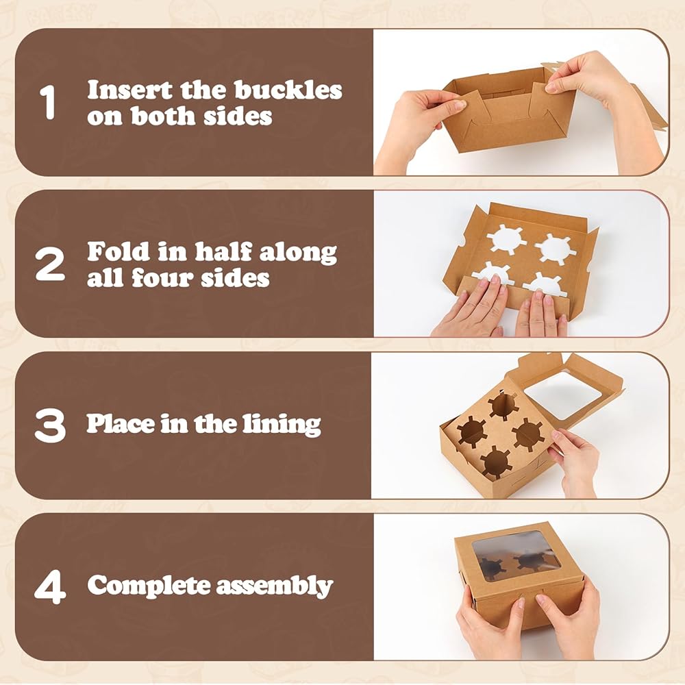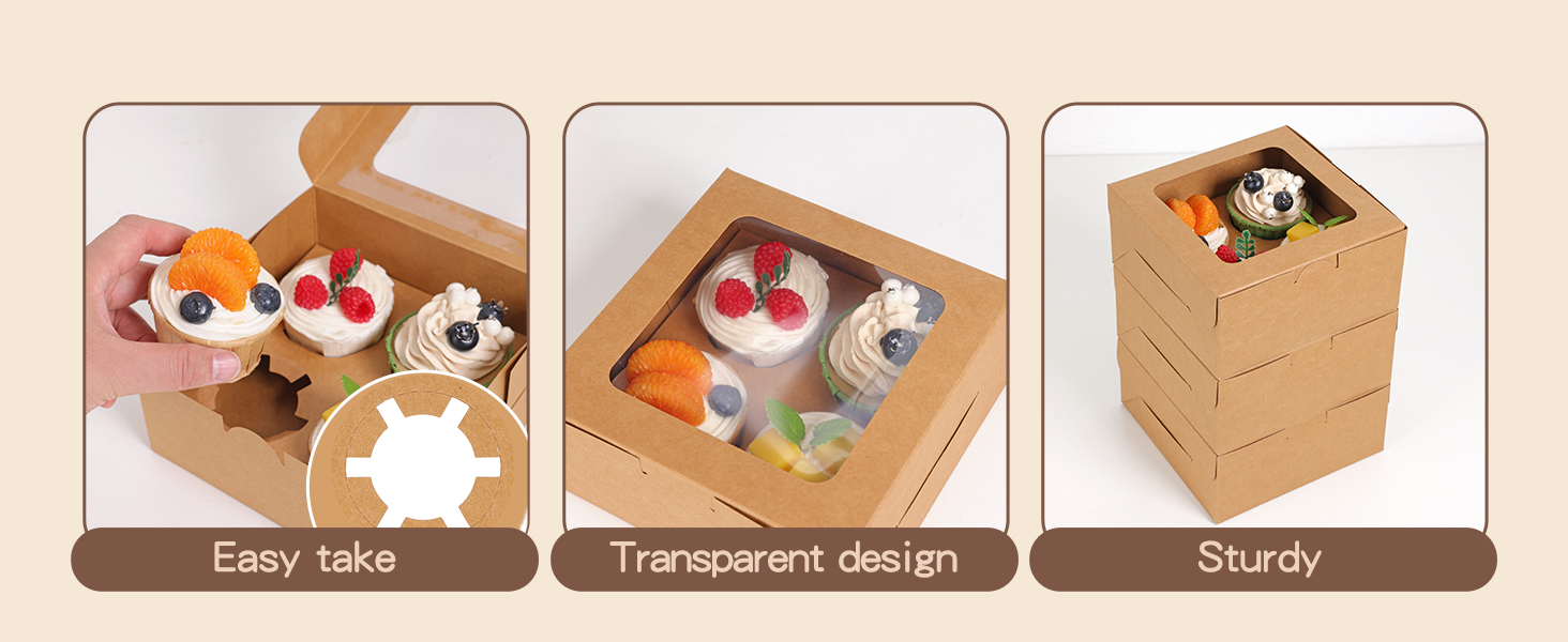 Transparent Top Window - Cupcake boxes feature a firmly glued clear window, allowing easy visibility of contents without worrying about detachment.