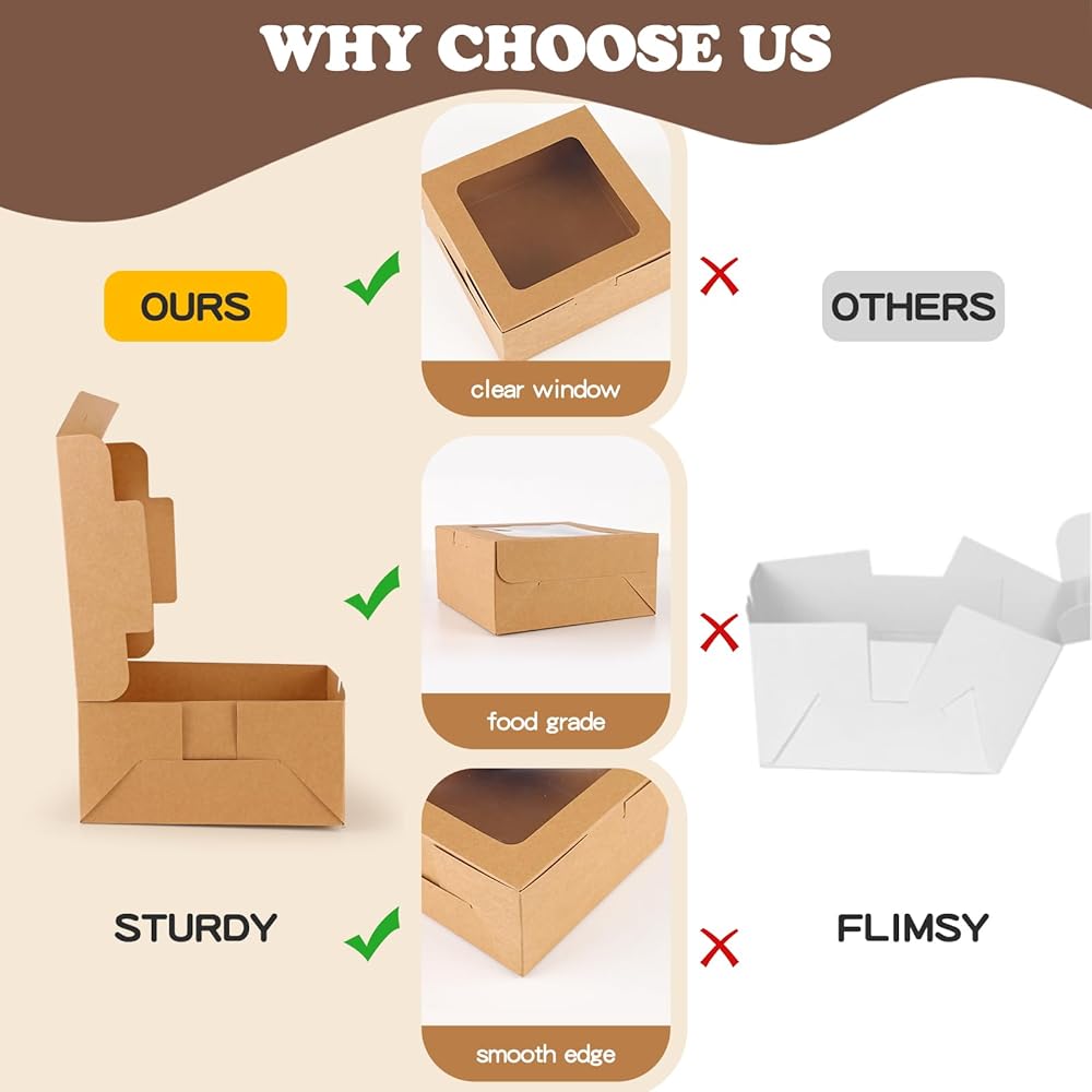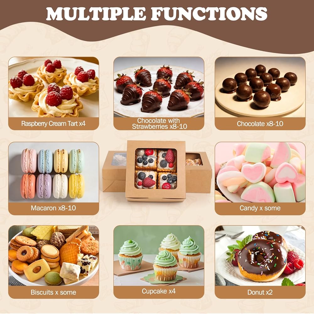 50-Pack (6.3x6.3x3in) - Versatile square boxes for small cakes, pies, macarons, cookies, chocolate strawberries and all your baked goods.