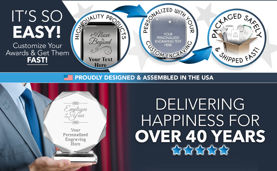 Crown Awards 7" Add Your Own Logo Corporate Award, Custom Logo Voyage Acrylic Trophy Includes Free Custom Art Design and Personalized Engraving Text