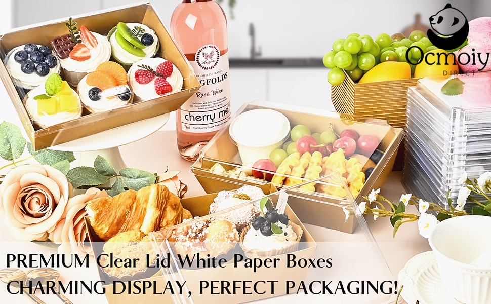 - Comes with 20 rectangle kraft paper boxes and clear PET plastic lids, each measures 8.3 in x 5.7 in x 2.8 in