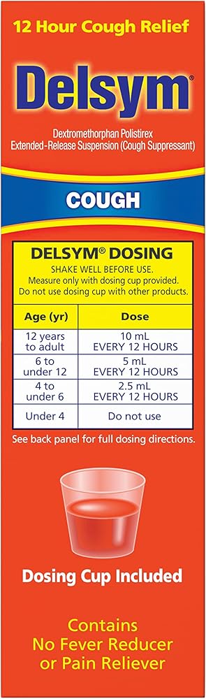 Delsym Adult Cough Suppressant Liquid, 12 Hour cough suppressant in Orange flavor has a patented time-release medicine that goes to work fast to silence cough for a full 12 hours, up to 2 times longer than other cough liquids*.