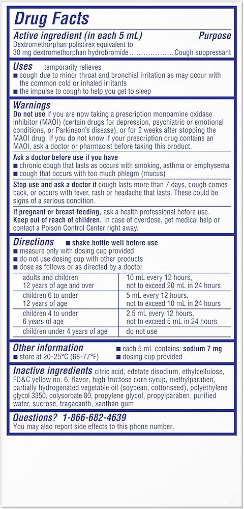 *Among OTC liquids per dose. Contains Dextromethorphan Polistirex, Extended-Release Suspension (Cough Suppressant.) Works both Day or Night, Alcohol-Free.
