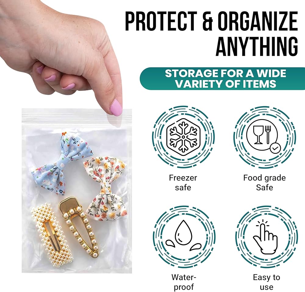 - VERSATILE STORAGE: Clear plastic zip bags perfect for organizing jewelry, beads, small parts, food items, and other small objects