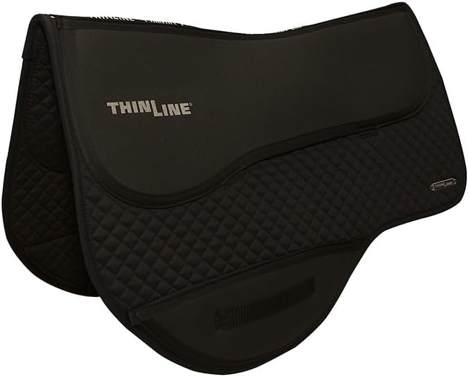Looking for support, pressure relief, comfort, breathability, and the ability to shim all in one perfect pad? Look no further! ThinLine is the only saddle pad endorsed by spinal surgeons, veterinarians, master saddlers, and riders like you. With ThinLine, you'll have close contact with the horse for better communication AND the ultimate impact protection. – 26.5″ (spine length) – 20 inch drop to bottom of rigging panel – A full 23″ of ThinLine along either side of spine – ThinLine guard at the point of drop rigging/girth or cinch to protect against pressures and rubs. – 13.75″ rear drop – 4.8 mm thick (3/16″) ThinLine panel on either side of the spine for protection.