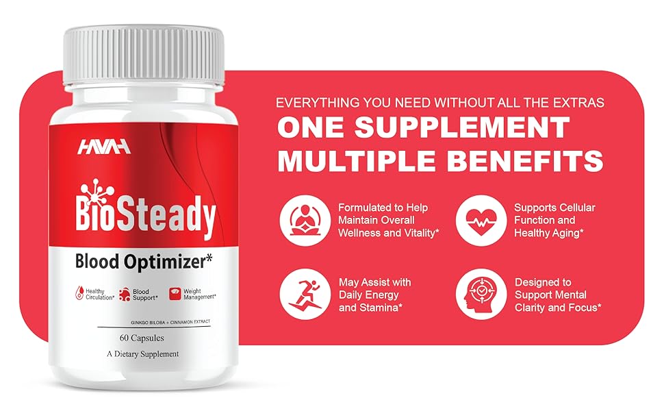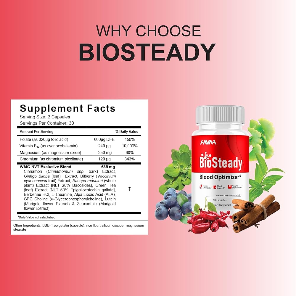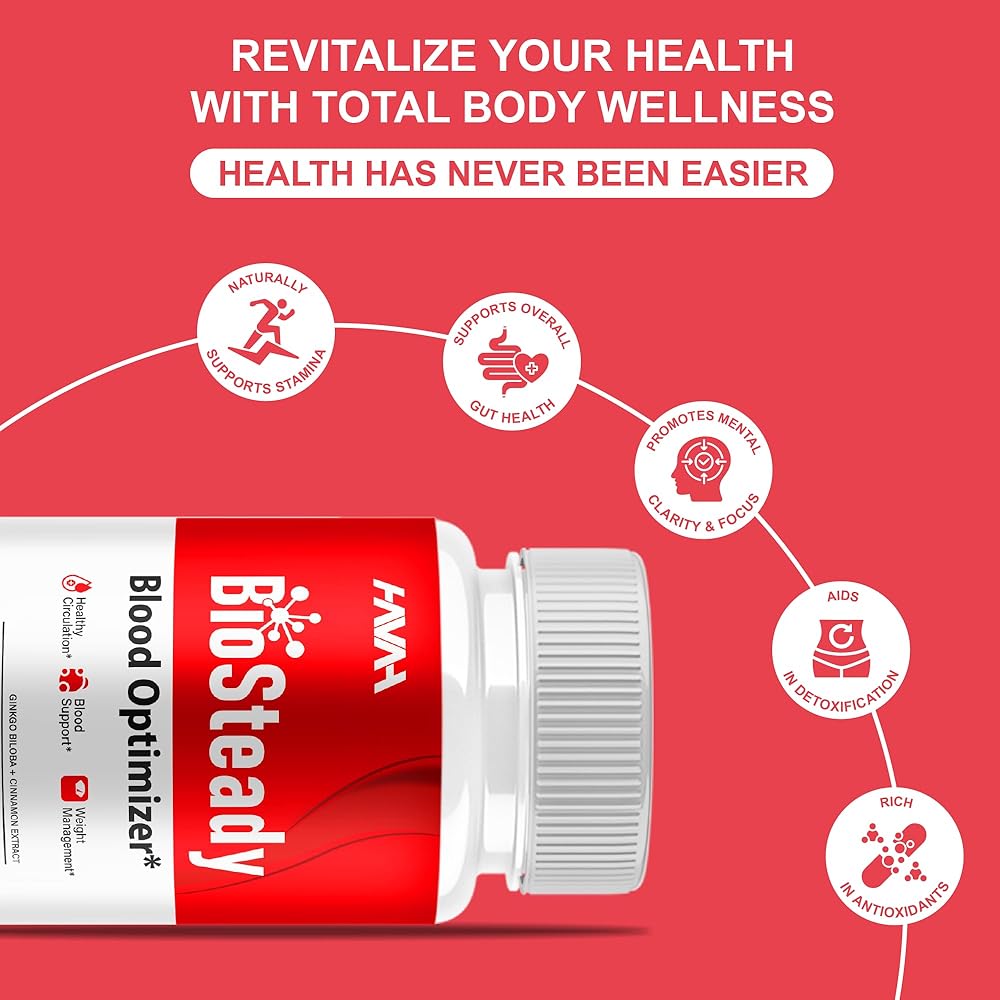 Havah BioSteady Blood Optimizer Advanced Daily Multivitamin Health Support and Natural Wellness Supplement Formula, Bio Steady Premium Health and Wellness Support Formula (1 Pack - 60 Capsules)
