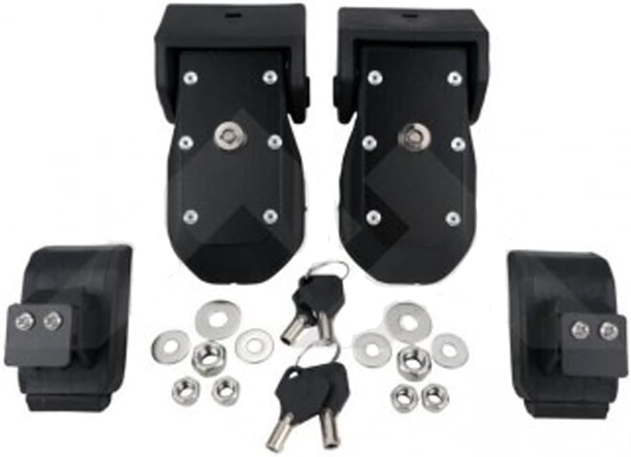 Bolt on security for your engine compartment and under hood accessories with a Locking Hood Catch Kit from RT Off-Road. Included with each kit is a pair of black plastic hood catches, a set of pre-installed lock cylinders with keys and all necessary hardware. This kit fits in place of the factory hood catches; a no-drill installation.